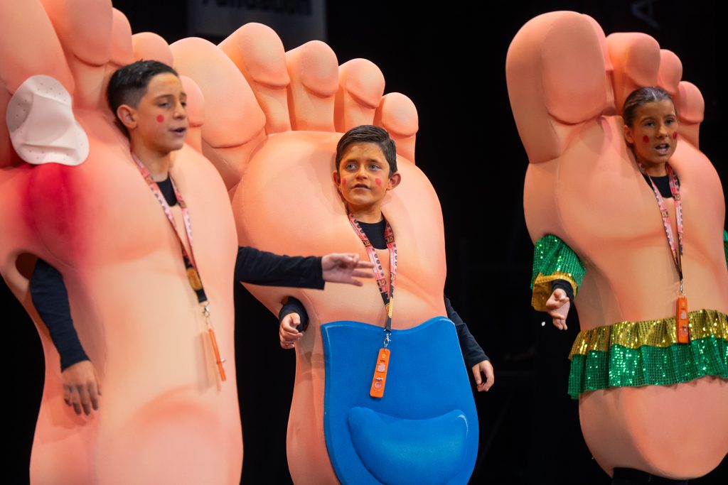 El cuarteto gaditano presentó un tipo centrado en patologías del pie y consiguió integrar humor físico, rumbita y reivindicación final sin saltarse el código infantil.