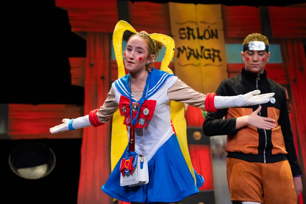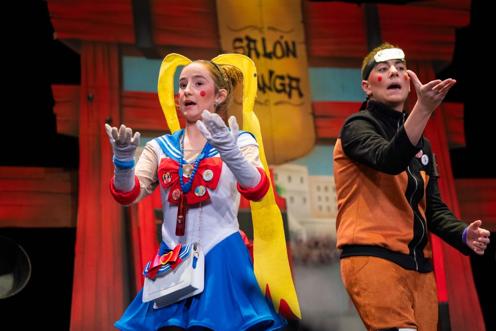 La propuesta escénica situó la acción en la salida de este evento, a partir de la cual los personajes fueron repasando experiencias, anécdotas y actividades propias del salón, construyendo una parodia coral en la que tuvieron cabida el cosplay, los talleres, los videojuegos, las tómbolas y la convivencia entre aficiones diversas. El texto avanzó con ritmo constante, enlazando situaciones cotidianas con referencias actuales, siempre desde un lenguaje comprensible y conectado con el público infantil y familiar.