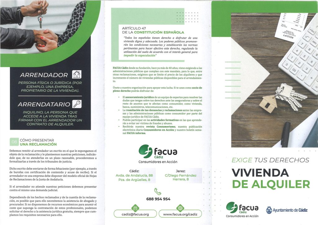 FACUA Cádiz desarrolla una campaña informativa sobre los derechos al alquilar una vivienda, en colaboración con el Ayuntamiento, ante el aumento de consultas por el encarecimiento del alquiler