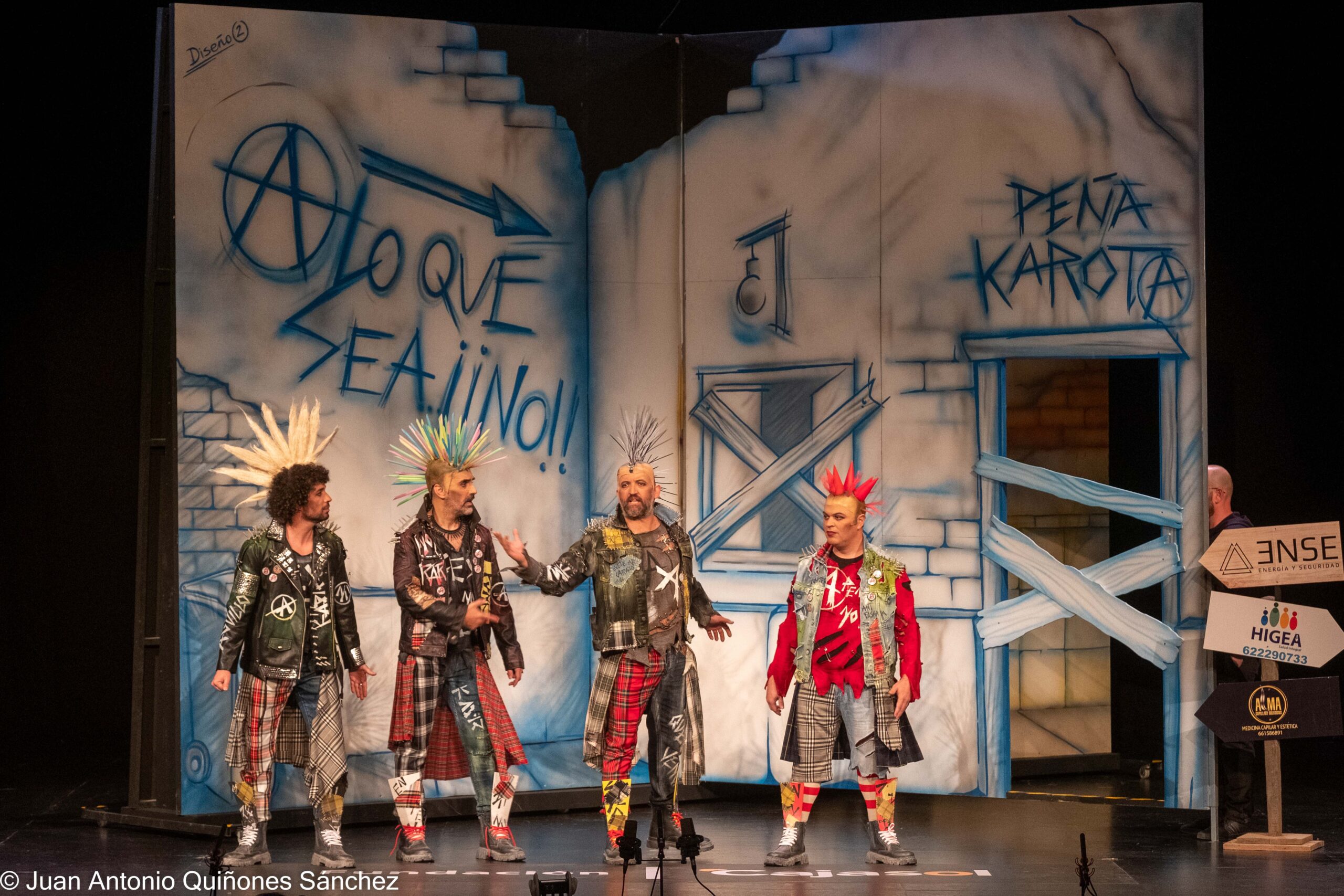 El primer pasodoble, un piropo a Cádiz por el que están dispuestos a dar su vida en la batalla. El segundo lo dedican a una niña que vive oprimida en una sociedad patriarcal y que tan solo puede ser libre por la noche mientras duerme. Cierran la tanda con un homenaje a la comparsa femenina Cabaret, de Juan Fernández, que hace quince años se alzó con el primer premio de juveniles, con algunas componentes de esa agrupación presentes en el escenario.