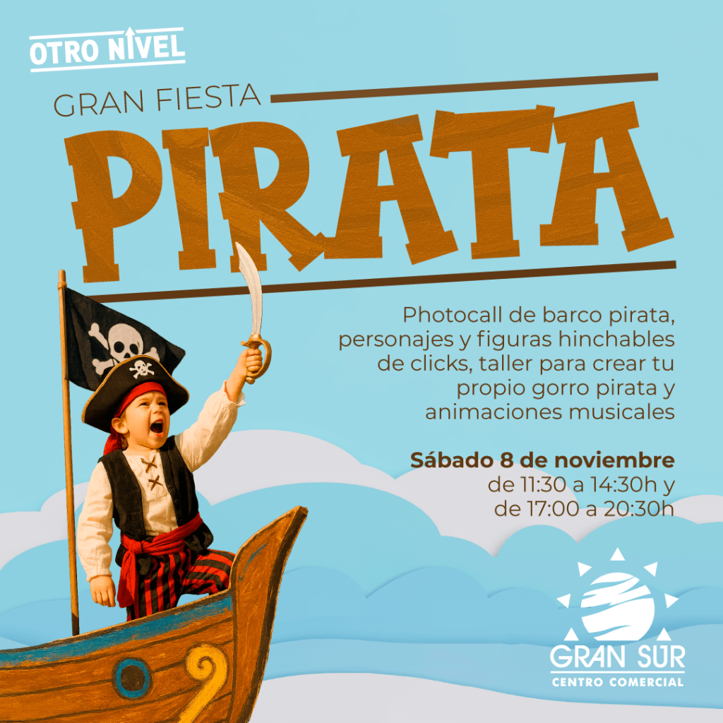 El evento, que se desarrollará en horario de 11:30 a 14:30 horas y de 17:00 a 20:30 horas, ofrecerá una completa programación con photocall, animaciones, hinchables, talleres y música ambientada en el mundo de los corsarios. La actividad está pensada como un plan familiar accesible y original, en línea con la apuesta de Gran Sur por ofrecer experiencias únicas a sus visitantes.