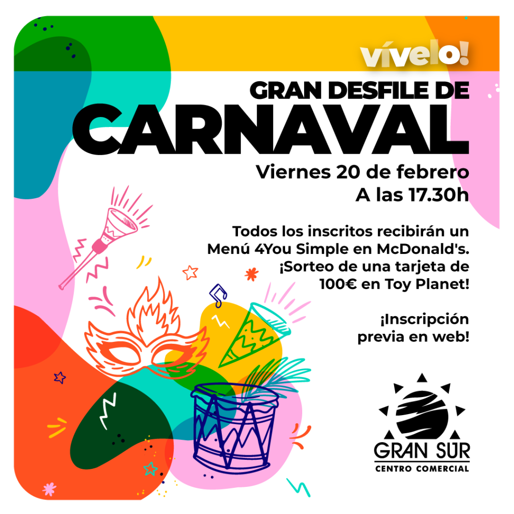 El centro comercial Gran Sur celebrará este viernes 20 de febrero un desfile de Carnaval infantil en La Línea de la Concepción. La actividad tendrá lugar a partir de las 17.30 horas en las instalaciones del propio centro y está dirigida a niños y familias del municipio.
