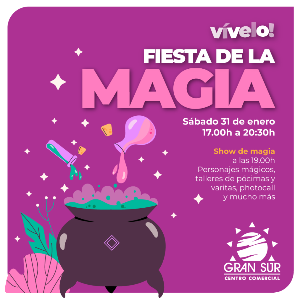 El centro comercial Gran Sur celebrará el próximo sábado 31 de enero el Día Internacional del Mago con una jornada de actividades dirigidas al público familiar. La iniciativa, denominada Fiesta de la Magia, se desarrollará entre las 17.00 y las 20.30 horas y combinará ambientación temática, talleres infantiles y un espectáculo escénico de magia en directo.