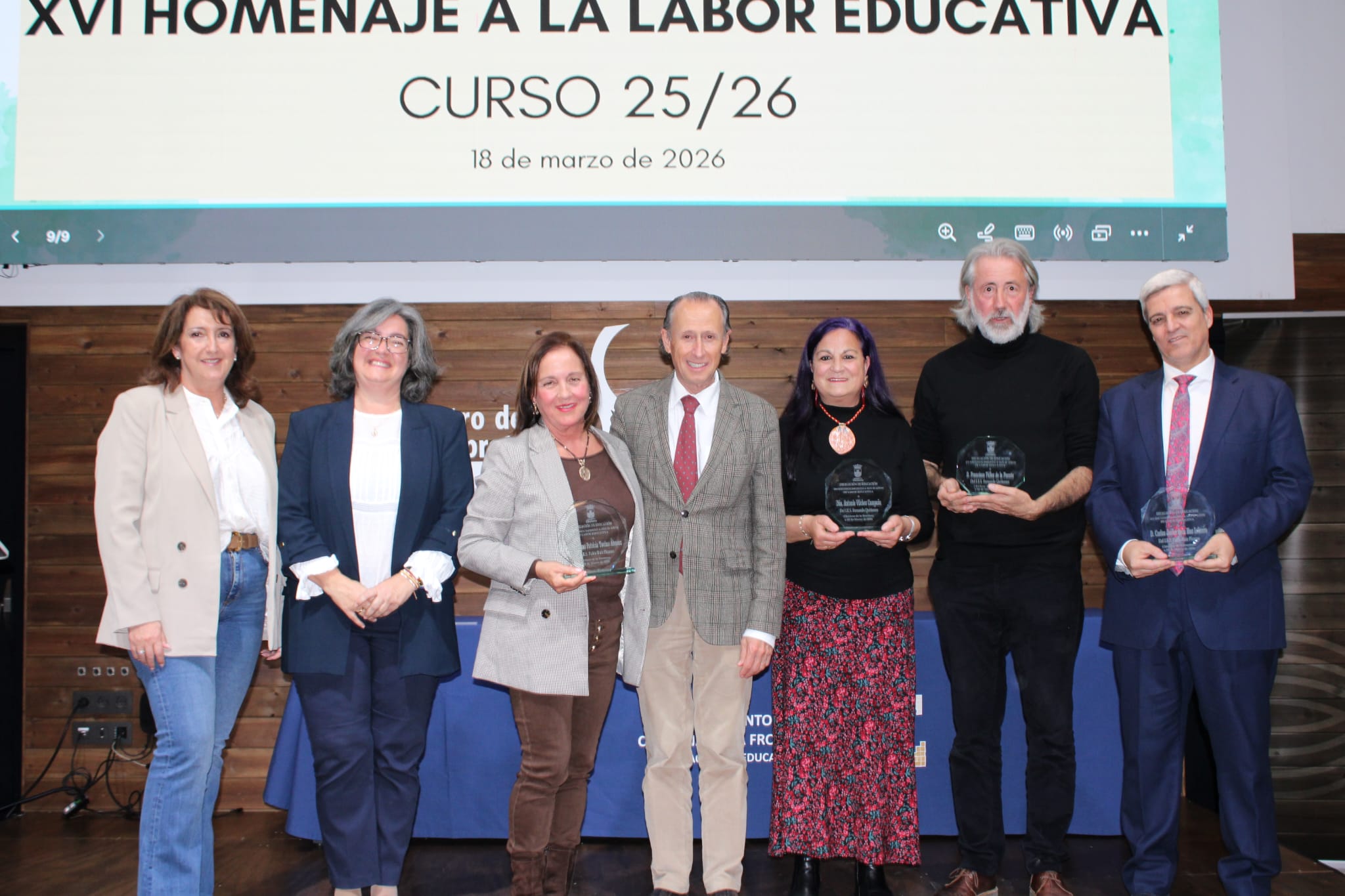 Las personas homenajeadas han sido Gemma Patricia Tocino Álvarez y Carlos Javier de la Hoz Lebrero, ambos docentes en el IES Pablo Ruiz Picasso, así como Antonia Vílchez Campaña y Francisco Téllez de la Fuente, profesores del IES Fernando Quiñones.