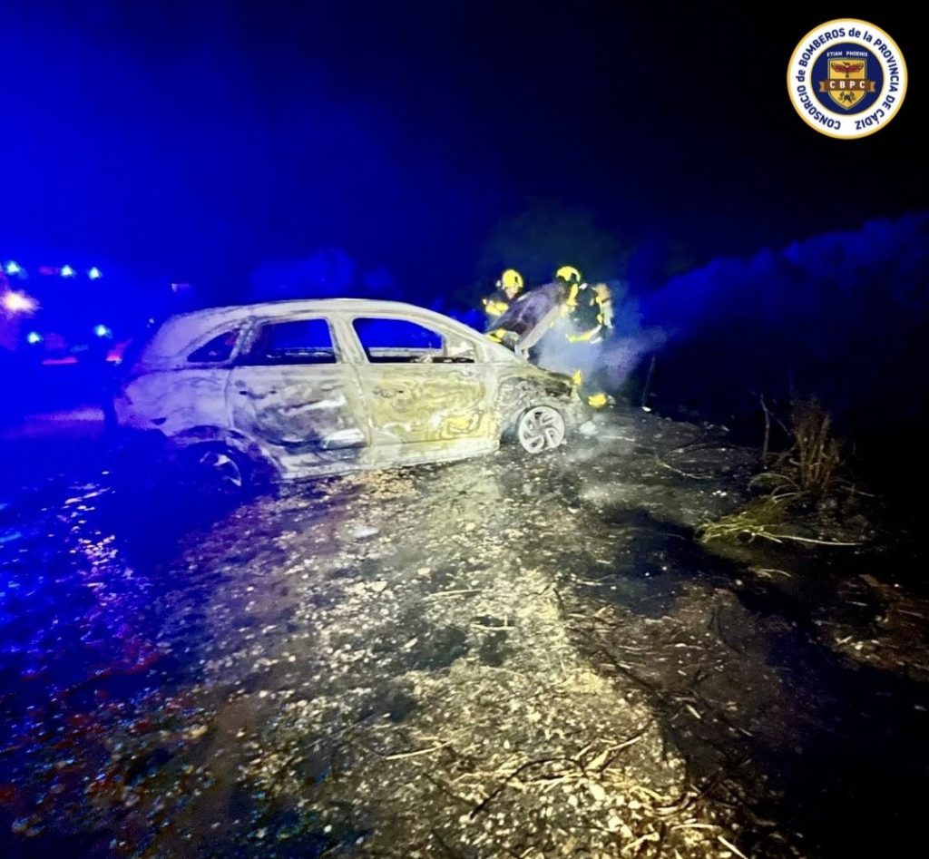 Un incendio de vehículo en Chiclana de la Frontera dejó este 12 de octubre un coche completamente calcinado y afectó a unos 100 metros cuadrados de vegetación en la entrada del sendero Cordel de los Marchantes, sin que se registraran heridos.
