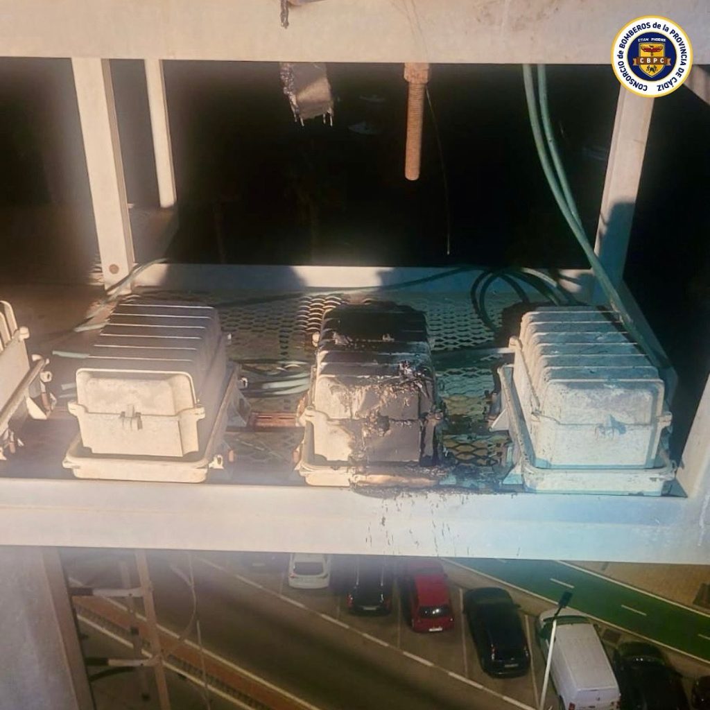 El operativo de emergencia movilizó a cinco efectivos con dos vehículos del parque de Cádiz. Los bomberos accedieron al lugar con autoescala y lograron controlar el incendio utilizando un extintor de CO2, además de desconectar la alimentación eléctrica de la torre afectada.