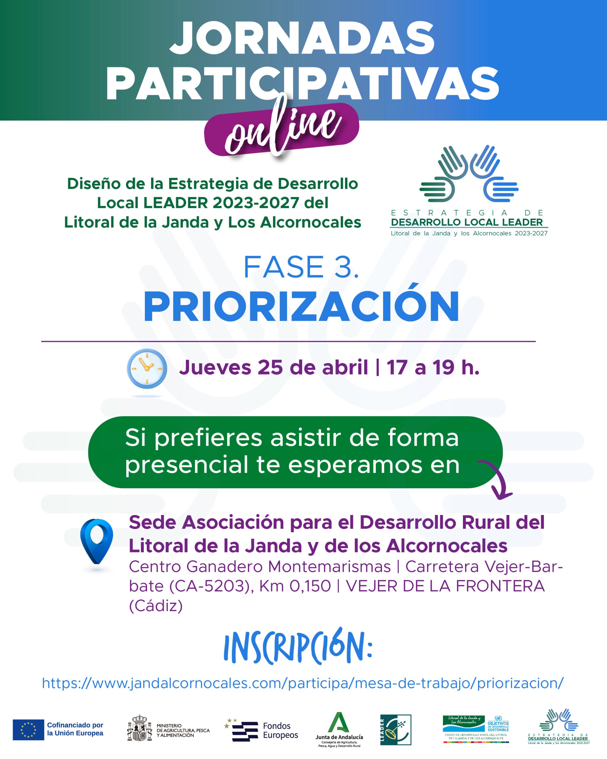 El proceso participativo para la elaboración de la Estrategia de Desarrollo Local Leader 2023 – 2027 del Litoral de la Janda y Los Alcornocales continúa avanzando con una nueva ronda de mesas de trabajo. En estas sesiones, los ciudadanos tendrán la oportunidad de contribuir en la definición de los objetivos y la financiación del proyecto.