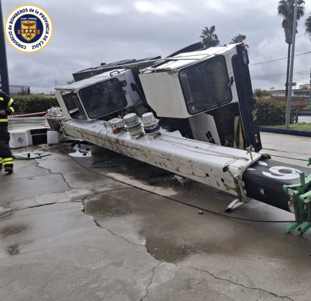 La intervención de bomberos por el vuelco de un camión pluma en la A-2001 movilizó en la tarde del 2 de diciembre a efectivos del Consorcio Provincial de Bomberos de Cádiz (CBPC) del parque de El Puerto de Santa María. El siniestro, registrado alrededor de las 13:00 horas en el kilómetro 4 de la carretera A-2001, no provocó heridos, pero sí obligó a desplegar un operativo especializado para controlar un vertido de combustible y colaborar en la recuperación del vehículo siniestrado.