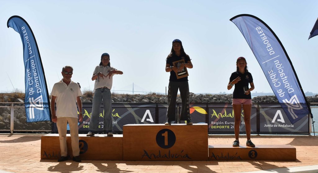 El resto de los podios también contó con regatistas destacados. En Sub 16 masculino, José de Linares (RC El Candado) y Miguel Ángel Cervantes (CN Sevilla) lograron la plata y el bronce, respectivamente. En femenino, Alba Ponce y Martina Quintana, ambas del RCN Gran Canaria, completaron el podio junto a María Guindin.