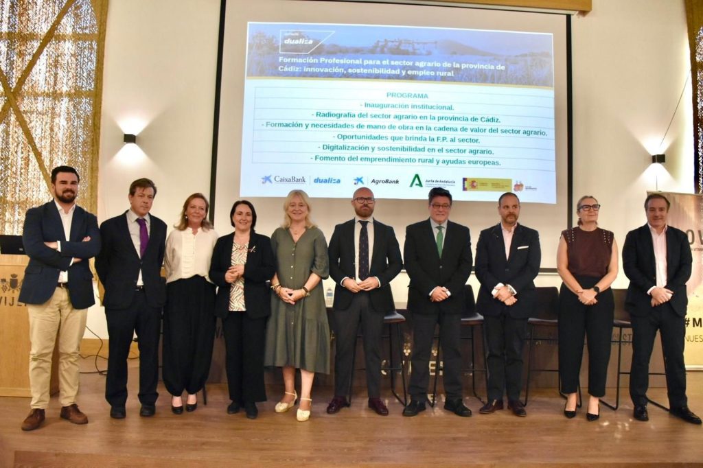 La Fundación Caixabank Dualiza y la Junta de Andalucía han celebrado este lunes en Jerez de la Frontera la jornada “Formación Profesional para el sector agrario de la provincia de Cádiz: innovación, sostenibilidad y empleo rural”, con el objetivo de impulsar la modernización del sector primario a través de la Formación Profesional (FP) y el talento joven. El encuentro, organizado en colaboración con Agrobank y el Ministerio de Agricultura, Pesca y Alimentación, tuvo lugar en las instalaciones de la Cooperativa Vitivinícola Jerezana Nuestra Señora de las Angustias (Covijerez).