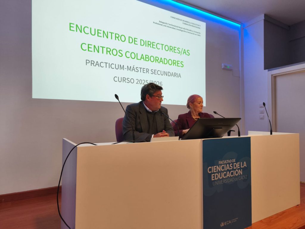 La Junta de Andalucía y la Universidad de Cádiz han dado un nuevo impulso a la coordinación del Prácticum del Máster Universitario en Profesorado de Educación Secundaria con la celebración de un encuentro provincial en la Facultad de Ciencias de la Educación de Puerto Real. La cita congregó a más de 70 representantes de equipos directivos de centros educativos colaboradores con el objetivo de mejorar la planificación, el seguimiento y la ejecución de las prácticas externas durante el curso 2025/2026.
