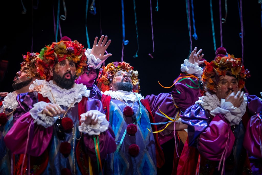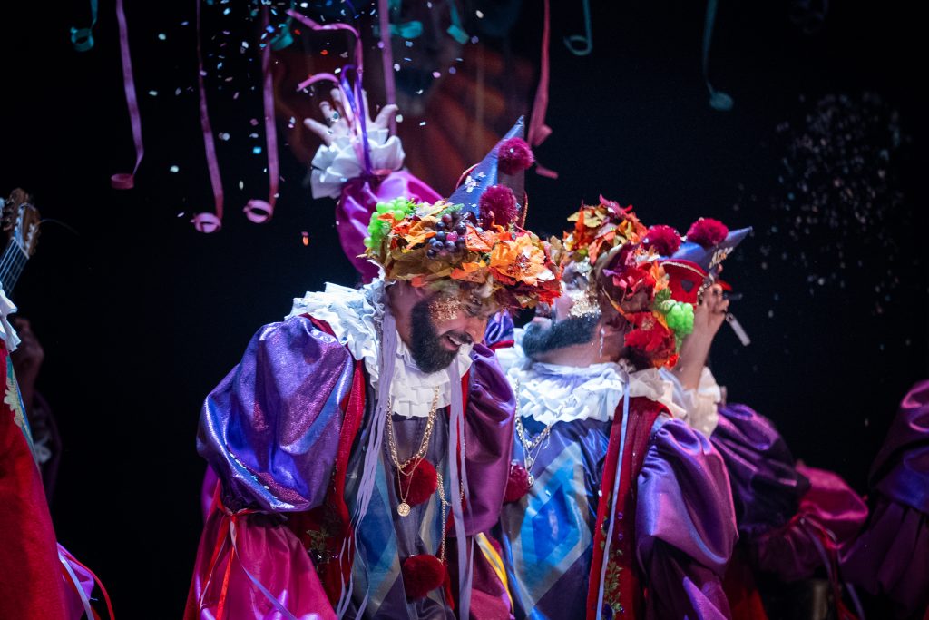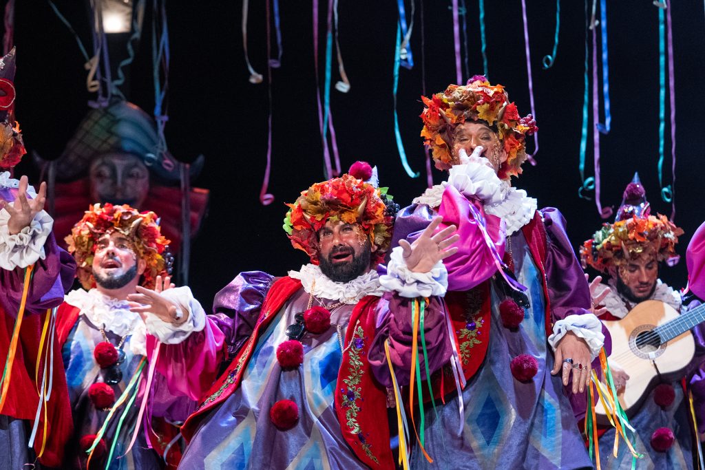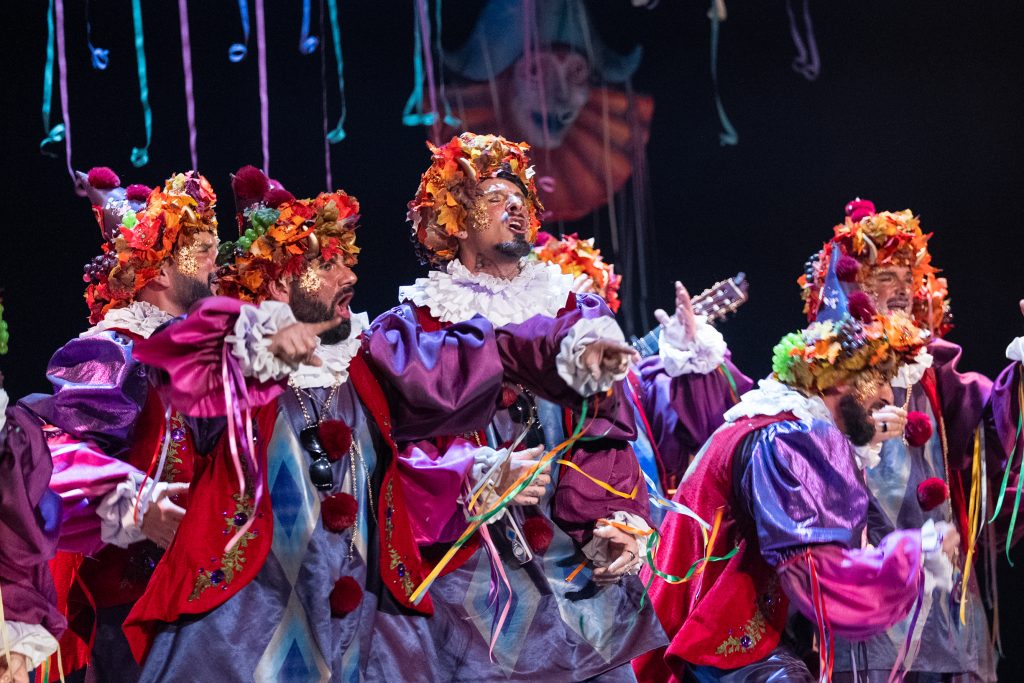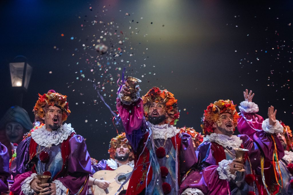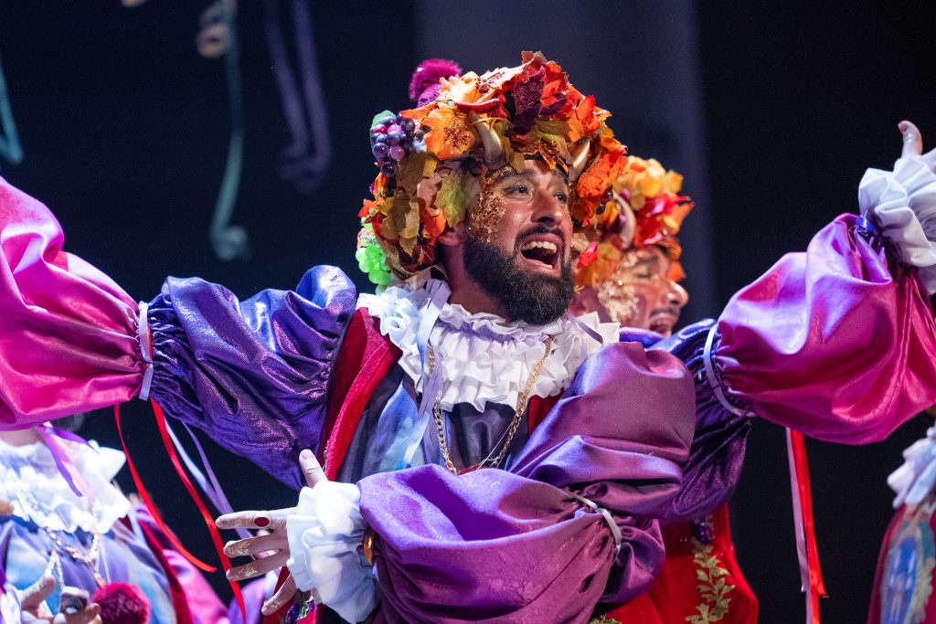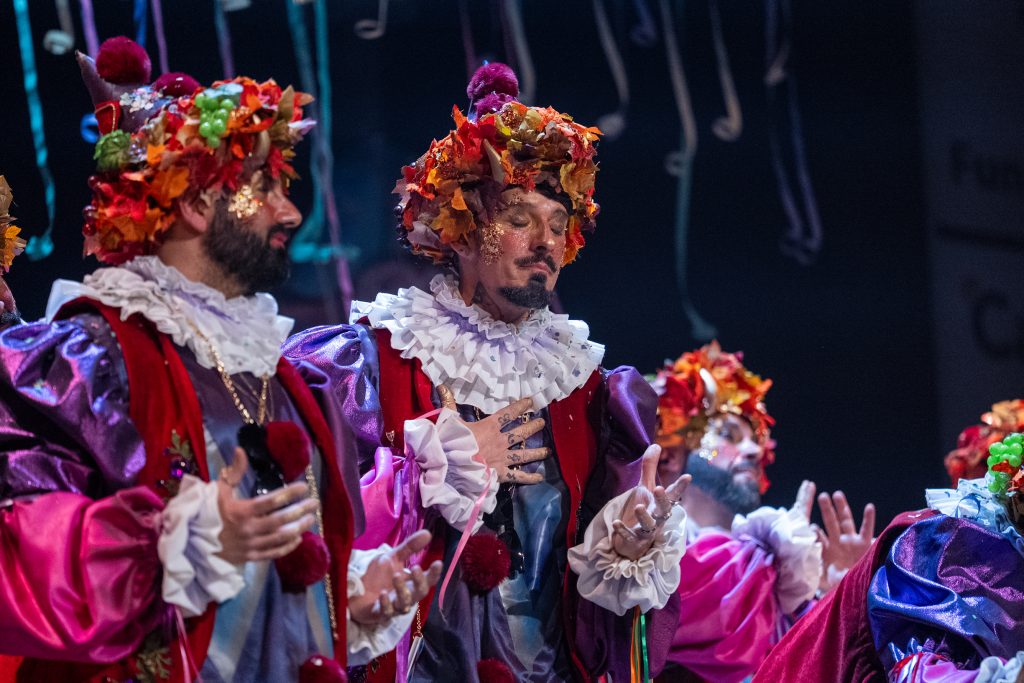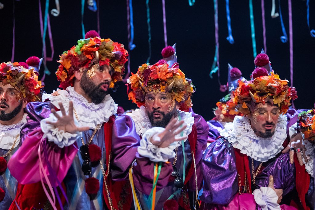 La comparsa de Julián Delgado y Javi Gallardo propone una alegoría dionisíaca que no termina de sostener un repertorio lastrado por imprecisiones interpretativas