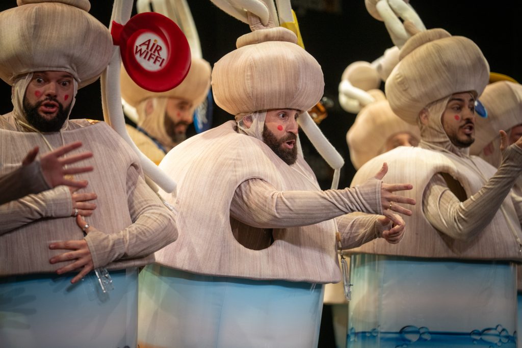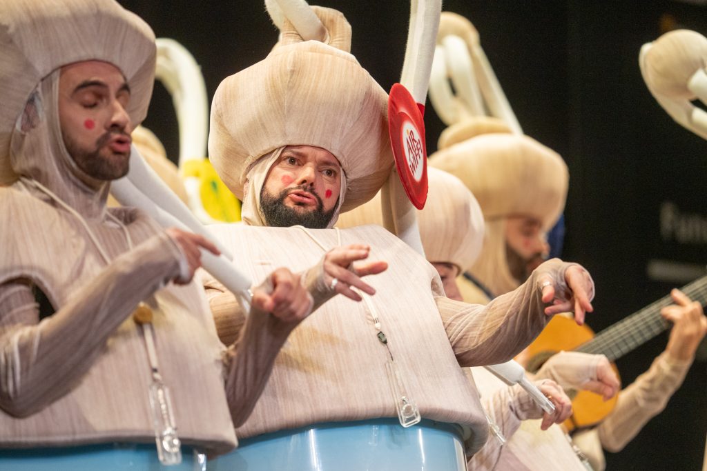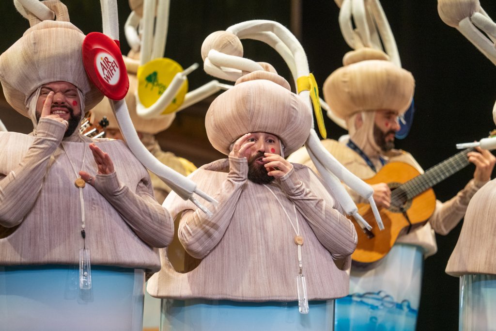 La presentación colocó el universo conceptual con rapidez, apoyándose en un recurso musical actual —la melodía viral de ‘Espresso Macchiato’— y en un gag de higiene automovilística (“lava el coche, por favor”). El arranque fue original en la forma, pero frío en fondo: el tipo ya no sorprende en el circuito tras el precedente de las pelusas, y el repertorio no consiguió construir expectativa. La interpretación fue correcta y limpia, pero sin el factor de contagio que sí tuvo la agrupación en 2025.