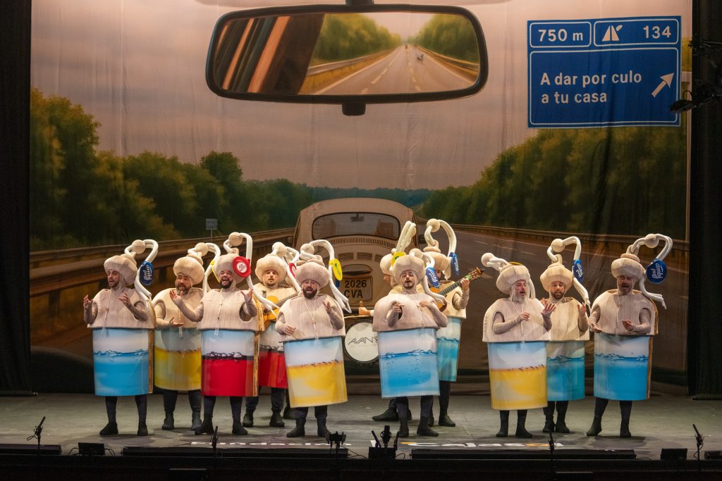 La chirigota de Camas —popularmente conocida como la del Chicho— regresó al Gran Teatro Falla con ‘Cariño… vaya ambientazo’, propuesta que da continuidad a la línea de humor absurdo que el grupo cultivó con éxito en 2025 en cuartos de final con ‘Cariño… qué pelusilla me tienes’. En esta ocasión, los protagonistas son ambientadores de coche: bloques de espuma colgados del retrovisor que narran, desde ese particular punto de vista, la vida dentro del vehículo. Sobre el papel, el tipo apuntaba a disparate costumbrista; en escena, la idea quedó corta, con un humor desacompasado, falta de pegada y escaso desarrollo dramático.