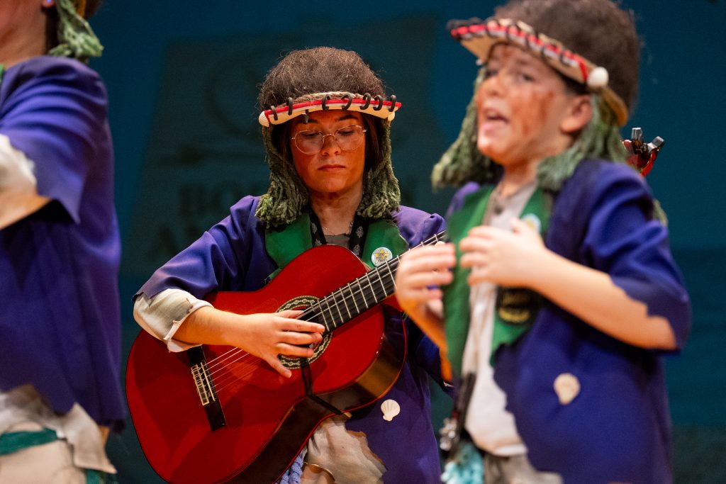Los tipos contribuyeron a redondear la idea. Los intérpretes llevaban cascos hechos con cocos y libretas a modo de visera, algas en el pelo, chaquetas desgastadas y pantalones remendados. Varias medusas realizadas en crochet completaban el atrezzo, mostrando un acabado cuidado y un punto artesanal que fue señalado desde el palco.