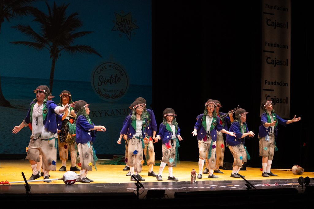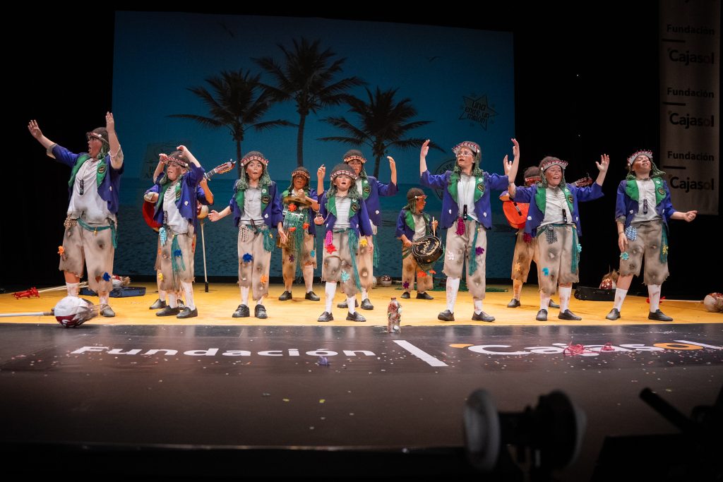 Con ‘La chirigota de la isla’, San Fernando aportó a la final infantil una propuesta cohesionada, con estética reconocible, humor blanco y contenido social atravesado por experiencias cercanas a la infancia real: el ritmo académico, el tiempo libre, las fiestas encadenadas, los viajes escolares y el exceso de actividades. Una forma de contar el mundo desde los náufragos del presente.