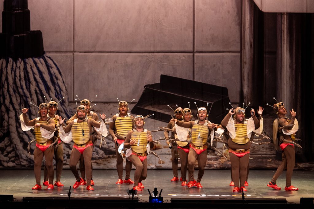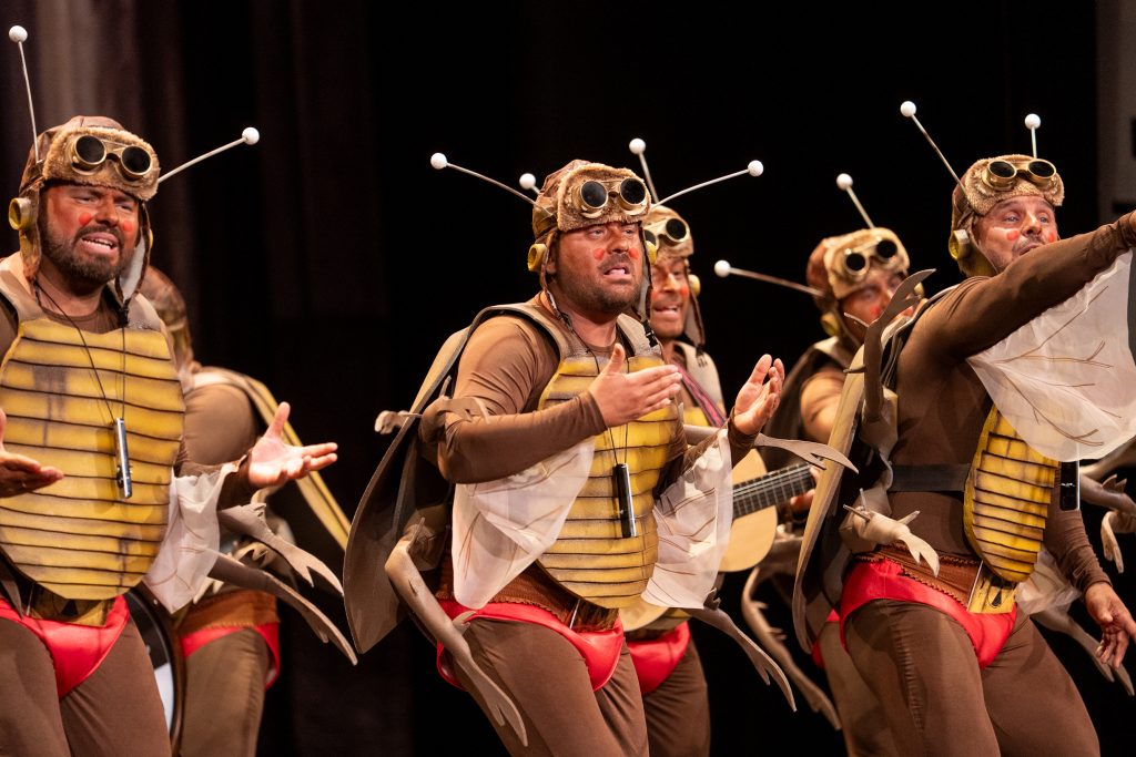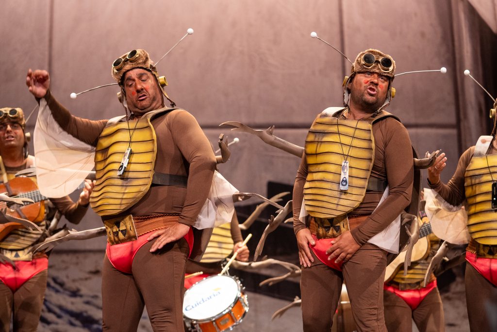 El grupo de Mairena del Alcor presentó una propuesta centrada en el humor físico y escatológico con un tipo de insecto y referencias a situaciones cotidianas del verano y de la vida doméstica
