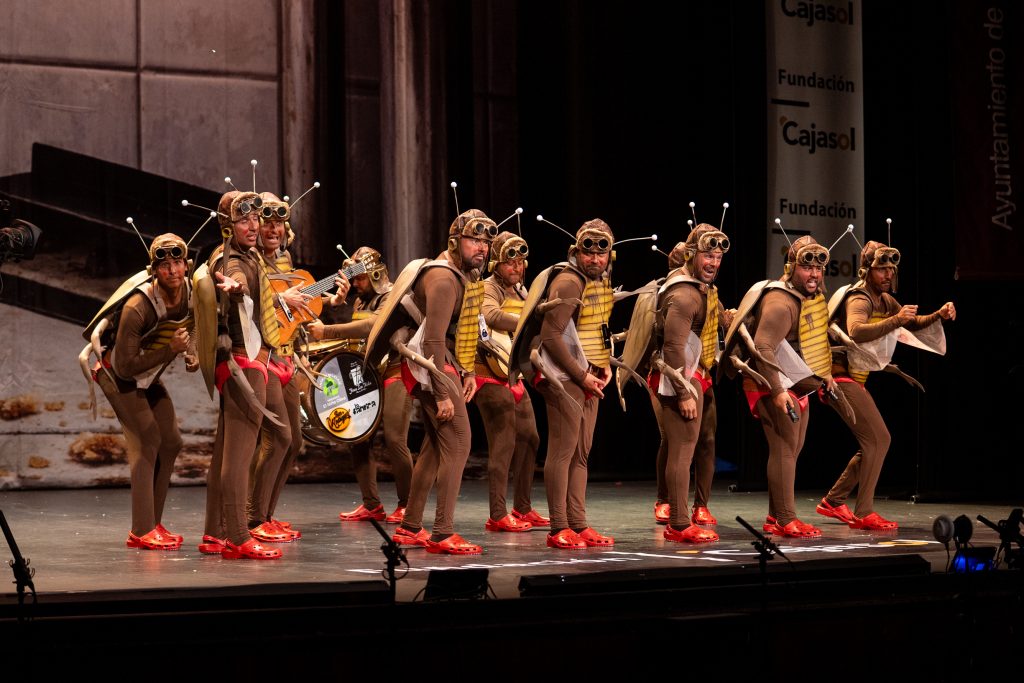 Con este pase, la chirigota de Mairena del Alcor firmó una participación centrada en el humor como eje principal, con una apuesta clara por el tipo, el gesto y la identificación de comportamientos domésticos a través de la mirada del insecto.