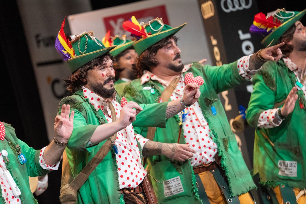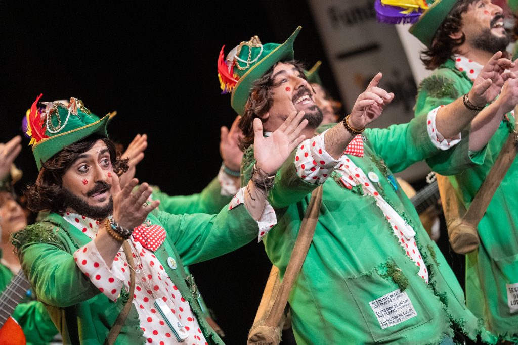 La tanda de cuplés muestra una clara desigualdad. El primero juega a “robar” un cuplé histórico de ‘Ricas y maduras’ para hablar del obispo, pero el remate no termina de funcionar ni de encontrar el golpe necesario. El segundo, en cambio, adopta el formato de cupletina y se muestra mucho más eficaz, aprovechando el tipo para bromear sobre penalizaciones, el consumo de drogas en Carnaval y ciertas contradicciones del propio concurso. Aquí sí aparece el pulso humorístico que el público espera del grupo, con mejor ritmo y mayor complicidad.