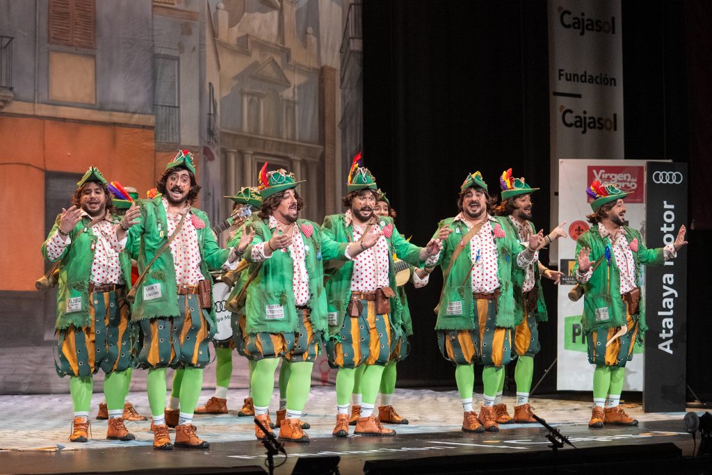 En el apartado interpretativo, el grupo se muestra cómodo con el tipo y con el lenguaje que maneja. El ritmo está bien llevado y el localismo se defiende con naturalidad, aunque se detectan algunos errores puntuales de interpretación que restan redondez al conjunto. La chirigota brilla más cuando se mueve en el terreno del cachondeo y la pamplina que cuando alarga las coplas de contenido político, donde el peso del discurso acaba imponiéndose al humor.