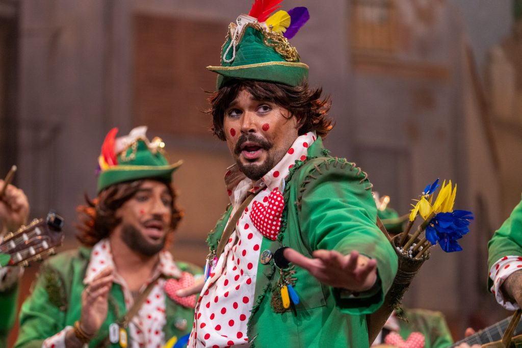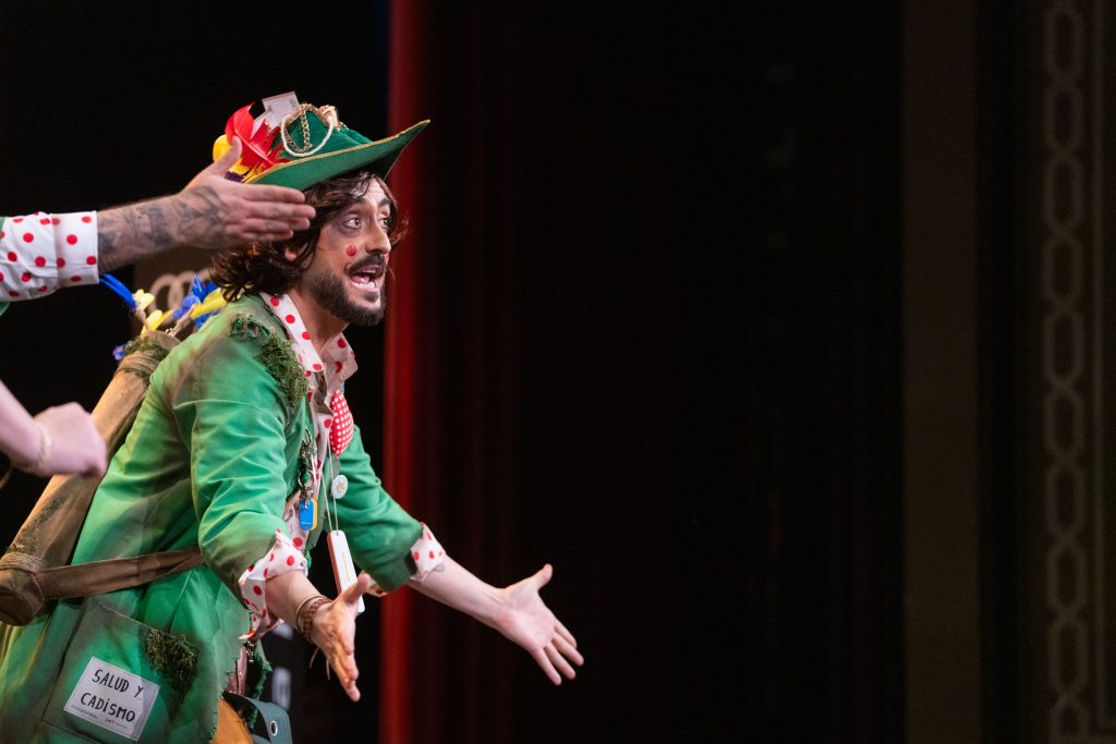 La tanda de cuplés mantuvo una línea de humor meta, con el recurso simpático de “robar cuplés” históricos del concurso (Yesterday, 1999 y Las Pitorrisas, 2008) para reescribirlos en clave actual. El ejercicio funcionó por nostalgia y por conocimiento del género. El primer cuplé, sobre el libro del Rey emérito, fue más previsible; el segundo, sobre la irrupción de la Velada del Año en Cádiz, resultó más fresco y con referencias al Nuevo Mirandilla. El estribillo fue de lo más festivo del pase: “Cádiz, te han robado tu pureza… ve pensando en poner una alarma”. Coreable, local, práctico y con función clara.