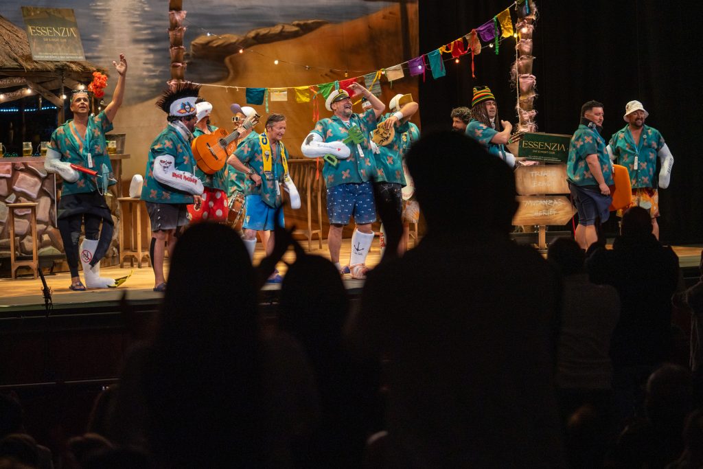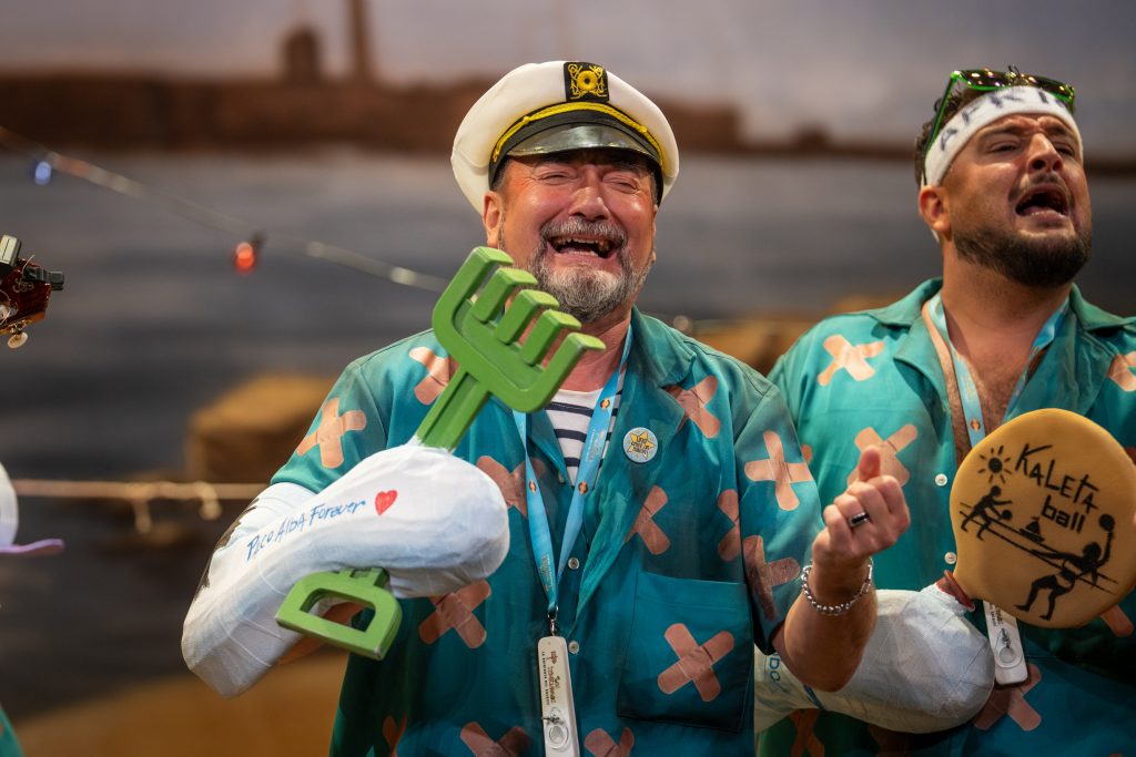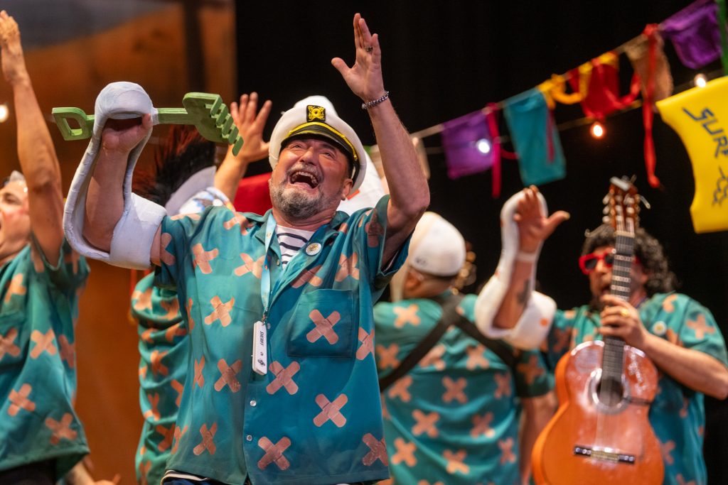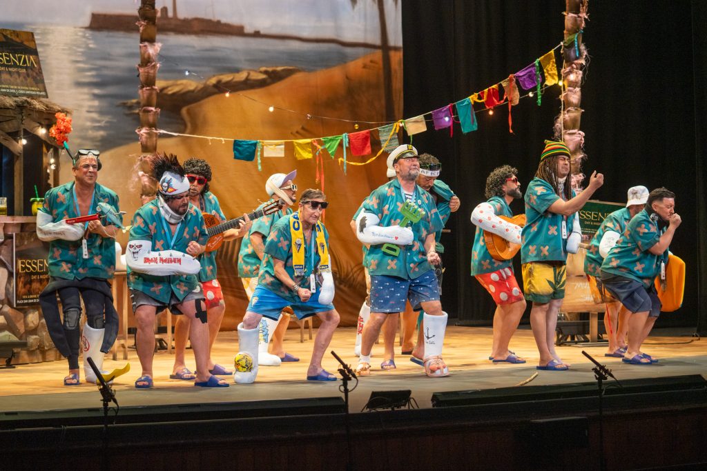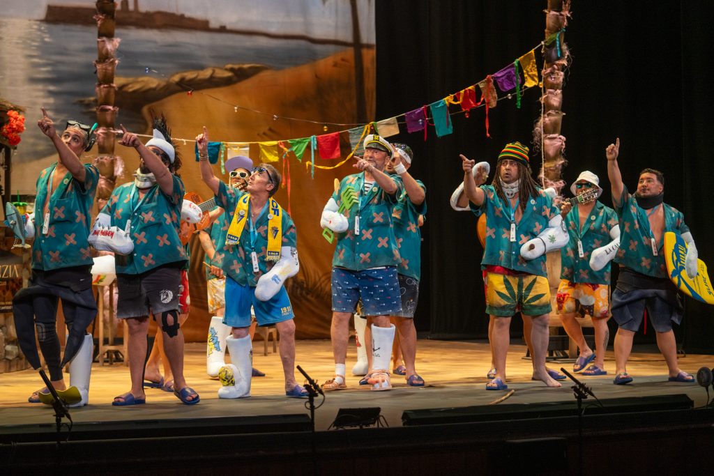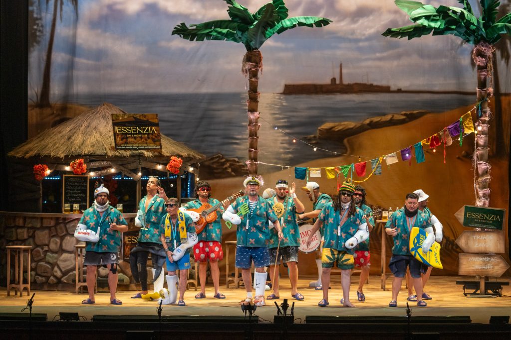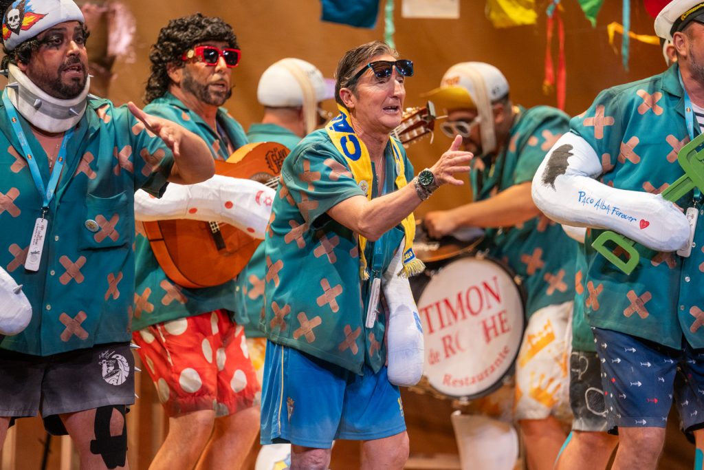 En lo interpretativo, la chirigota ofreció oficio. Afinación correcta, volumen equilibrado y una guitarra central sosteniendo el color clásico del grupo. El patio de butacas acompañó el pase con simpatía, sin momentos de rechazo ni de entusiasmo excepcional, confirmando la naturaleza templada del estreno.
