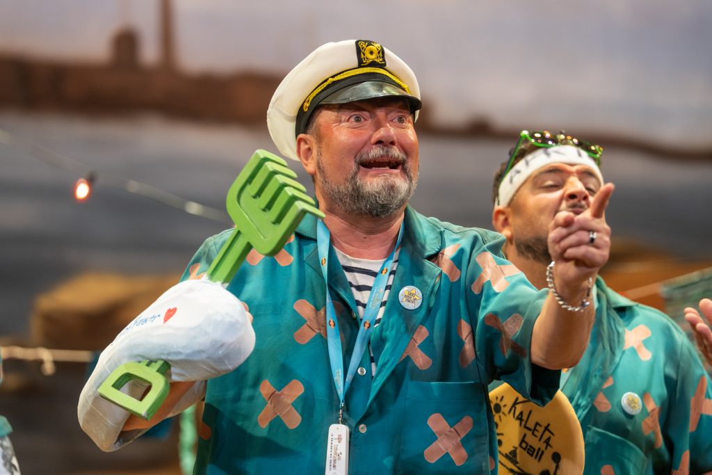 El tipo proponía la paradoja de quienes están “malitos” para trabajar pero perfectamente activos para el ocio. El recurso se sostuvo en la literalidad: escayolas, collarines, muletas y vendajes sobre mesas de terraza. El planteamiento tuvo lectura inmediata, aunque demostró ser un personaje de poco recorrido cómico, ya que la gracia se agota pronto y obliga al repertorio a forzar variantes del mismo chiste.