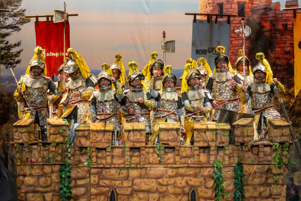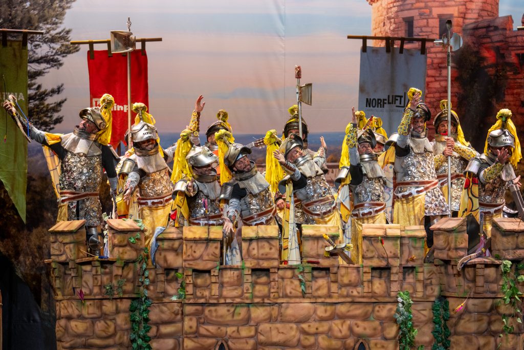 La chirigota de Écija de los hermanos Juan Francisco y David Castro regresó al Gran Teatro Falla con expectativas altas tras el primer accésit logrado en 2025 con ‘Al cielo con él’. Bajo la dirección de Jorge Manuel Rodríguez, el grupo presentó este año ‘Nos hemos venío arriba’, encarnando a caballeros medievales haciendo guardia en un torreón. La propuesta apostó por un tipo con movilidad escénica relativa, ingenio plástico y capacidad metafórica para alimentar el humor: almenas, asedios, vasallaje, defensa del castillo e incluso referencias al pregón.