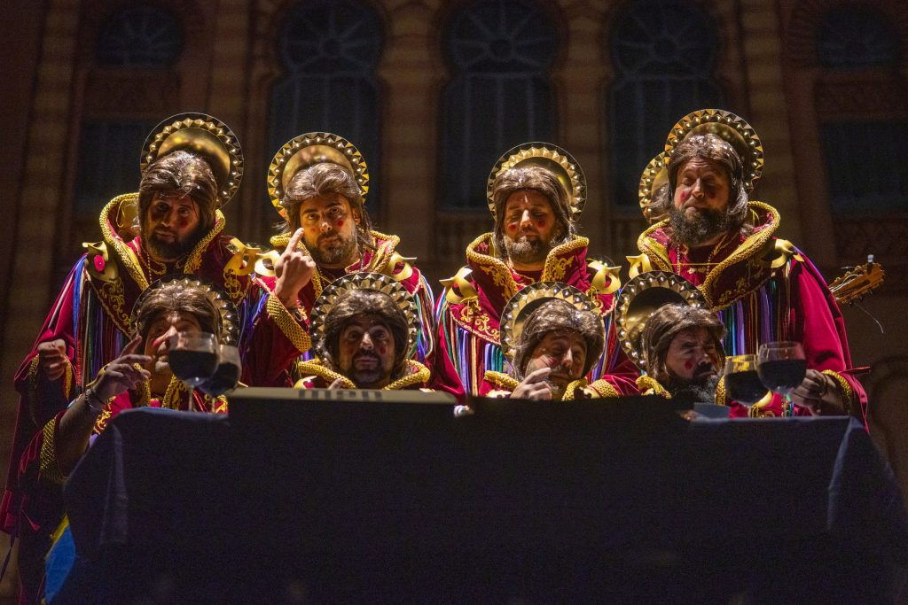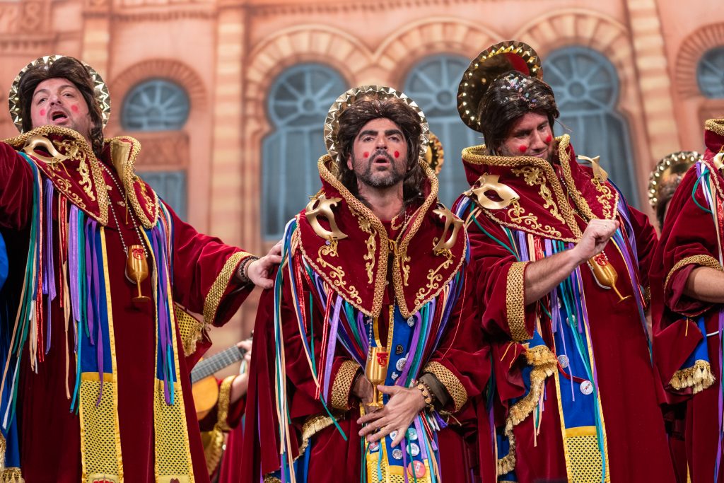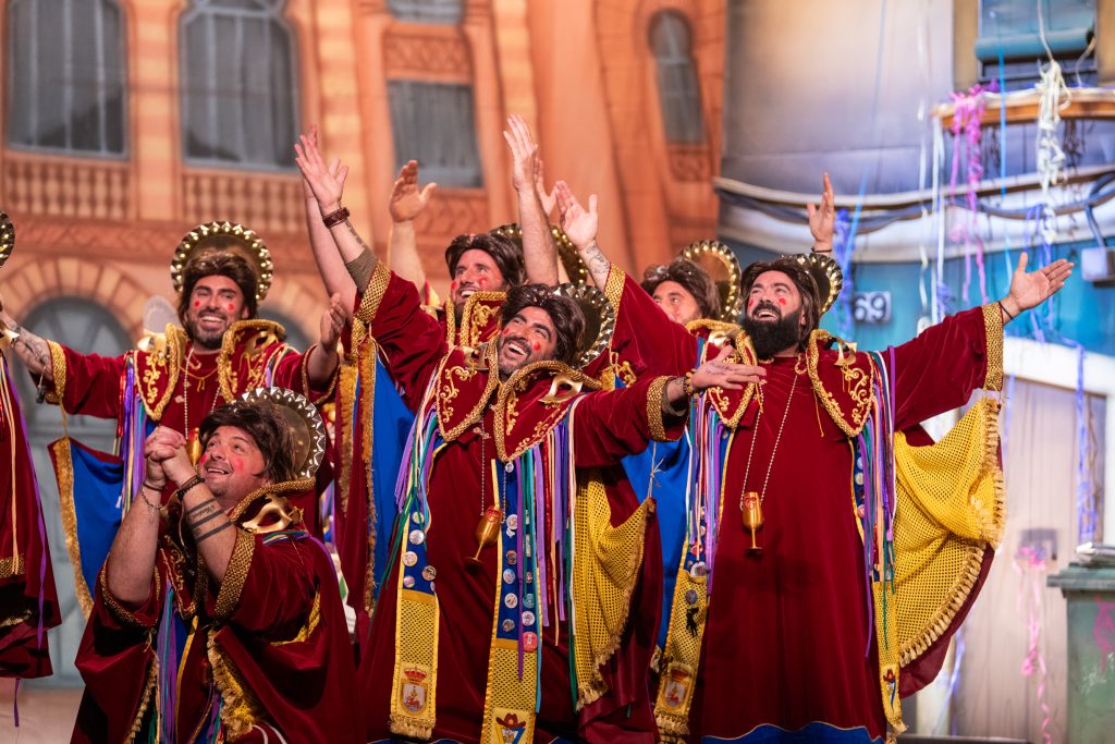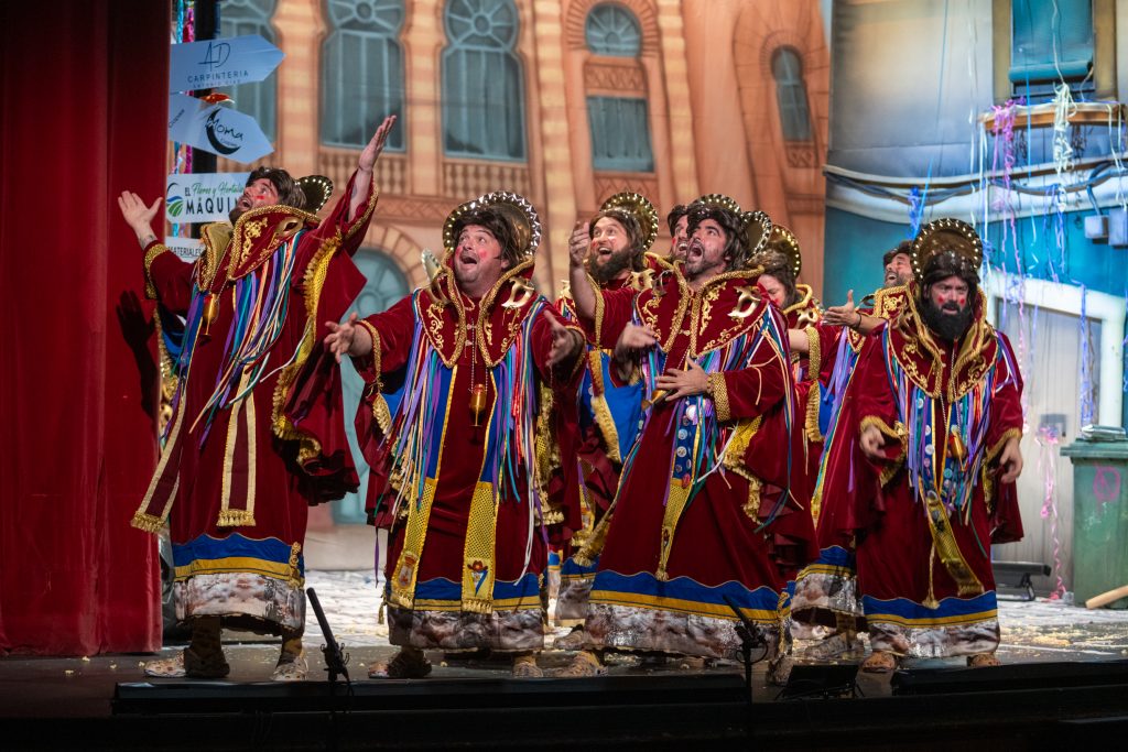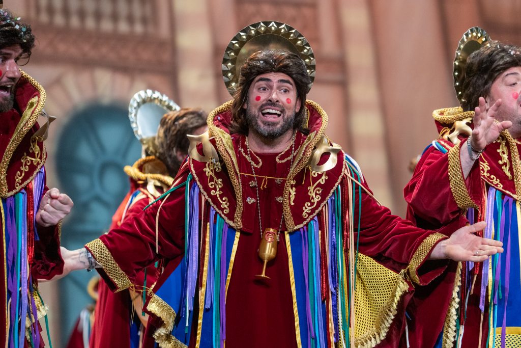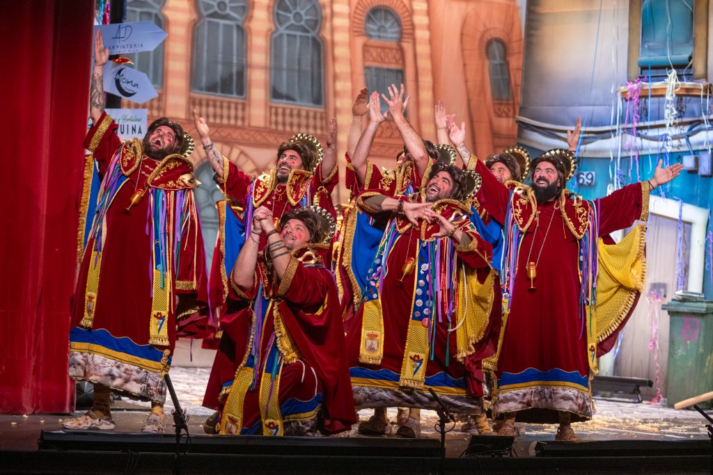 La tanda de cuplés fue el tramo más débil del pase. El primero, de desvergüenza escatológica, giró en torno al perro de San Roque, los lametones en zonas delicadas y una foto incómoda. La comparación funcionó en clave de disparate, pero sin remate efectivo. El segundo jugó con la restauración de la Macarena y con un baile de santas rubias en el cielo, pero tampoco encontró sorpresa ni daño humorístico. En una modalidad donde el cuplé se ha endurecido y exige temperatura, ambos quedaron en terreno inocuo. El estribillo, aunque festivo, no se instaló en la memoria del público.