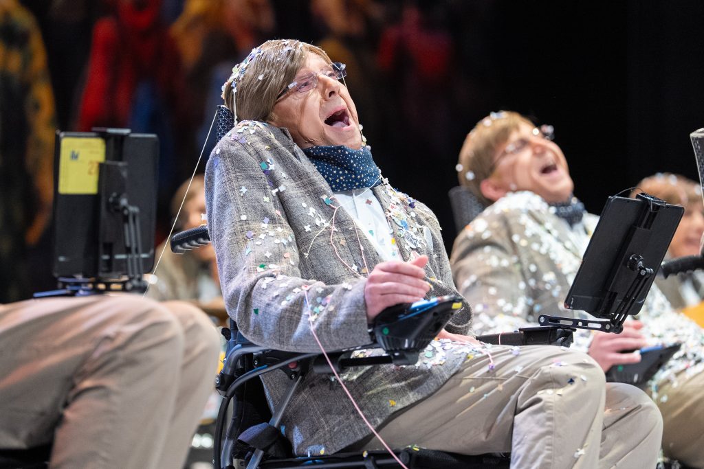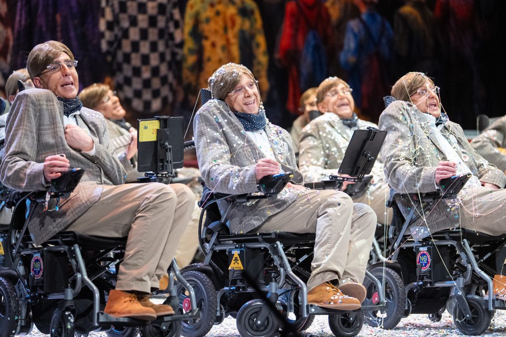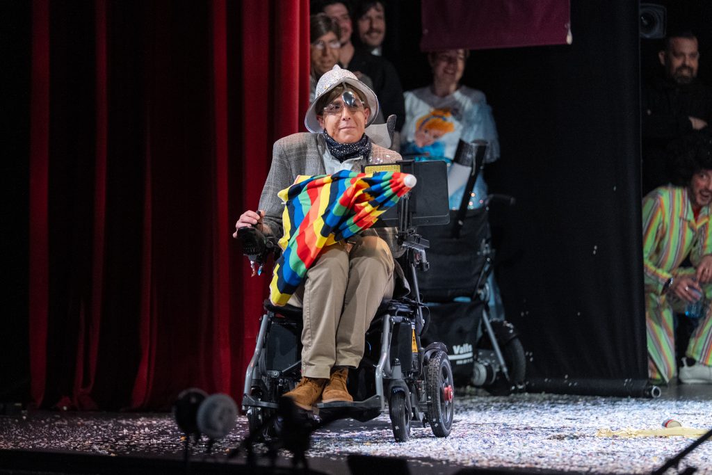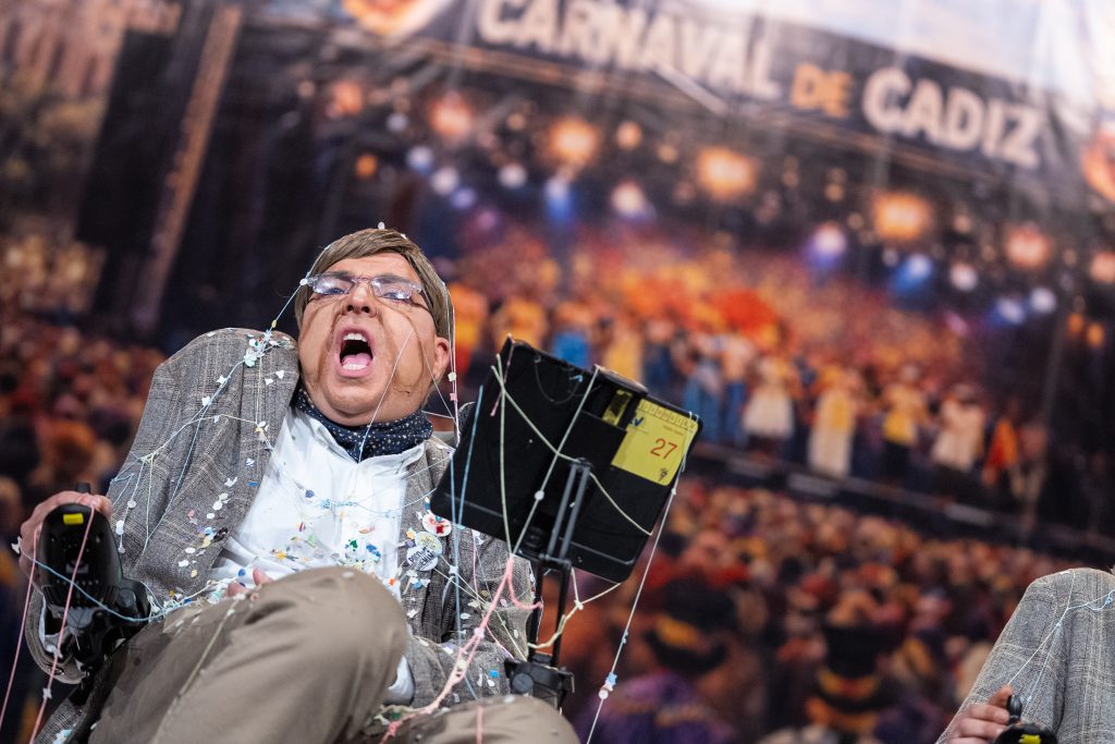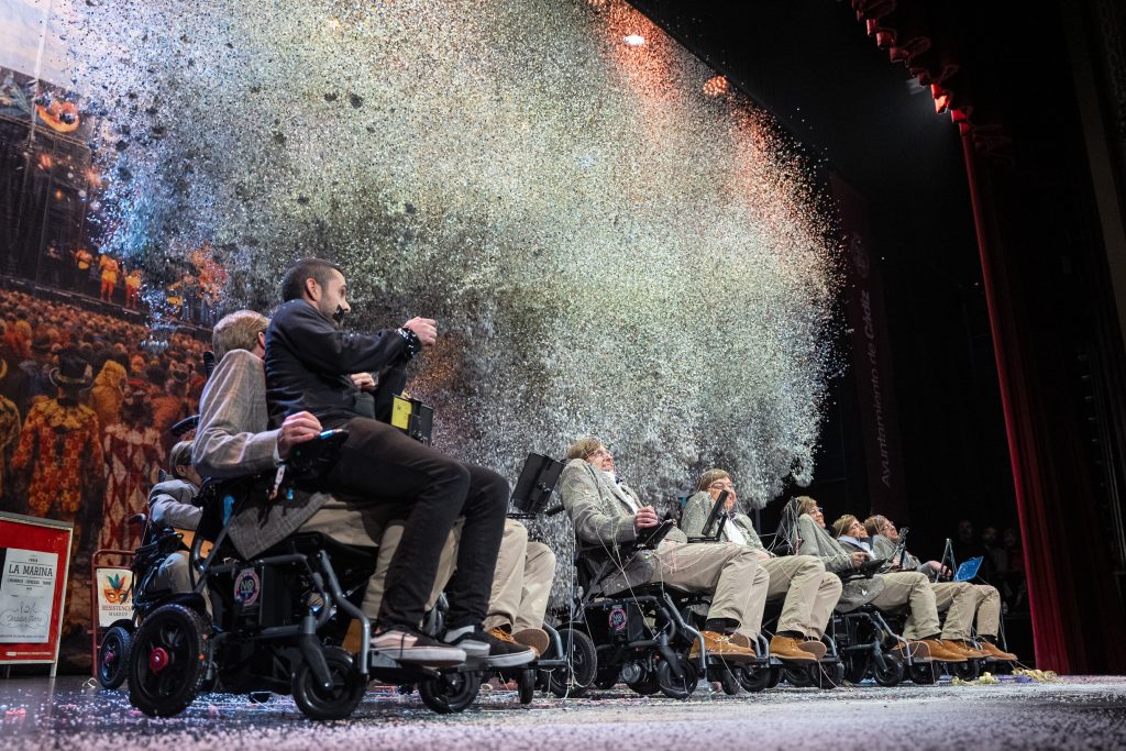 El tipo convierte a Stephen Hawking en observador irónico del Carnaval y del mundo, una elección arriesgada tanto por la carga simbólica del personaje como por las evidentes limitaciones escénicas que impone. Lejos de ser un obstáculo, el personaje condiciona y da sentido a todo el repertorio, obligando a la chirigota a optar por la contención, el texto y la intención antes que por el exceso de golpes.