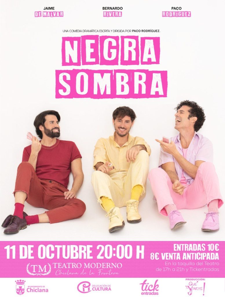 La compañía ‘Qué jArte’ regresa a Chiclana de la Frontera para presentar su espectáculo ‘Negra sombra’, una obra con tintes de comedia dramática que reflexiona sobre la libertad de pensamiento y la identidad personal. La cita será este sábado, 11 de octubre, a las 20:00 horas en el Teatro Moderno, dentro de la programación cultural del Ayuntamiento de Chiclana.