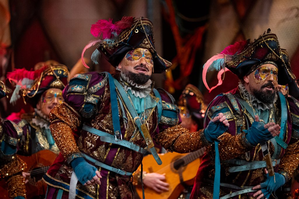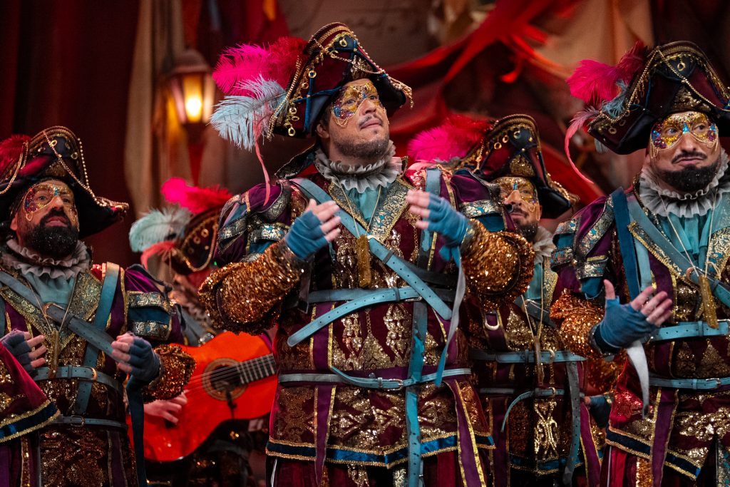 El estilo de la comparsa sigue siendo plenamente reconocible. Letras directas, prosaicas, con un gaditanismo emocional muy marcado y un uso recurrente del metacarnaval como recurso narrativo. En esta semifinal, ese planteamiento encuentra su mejor versión cuando se centra en los mensajes serios y comprometidos, especialmente en los pasodobles.