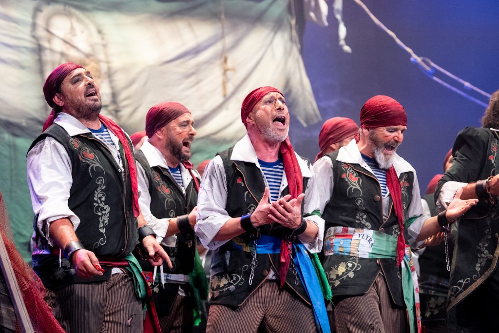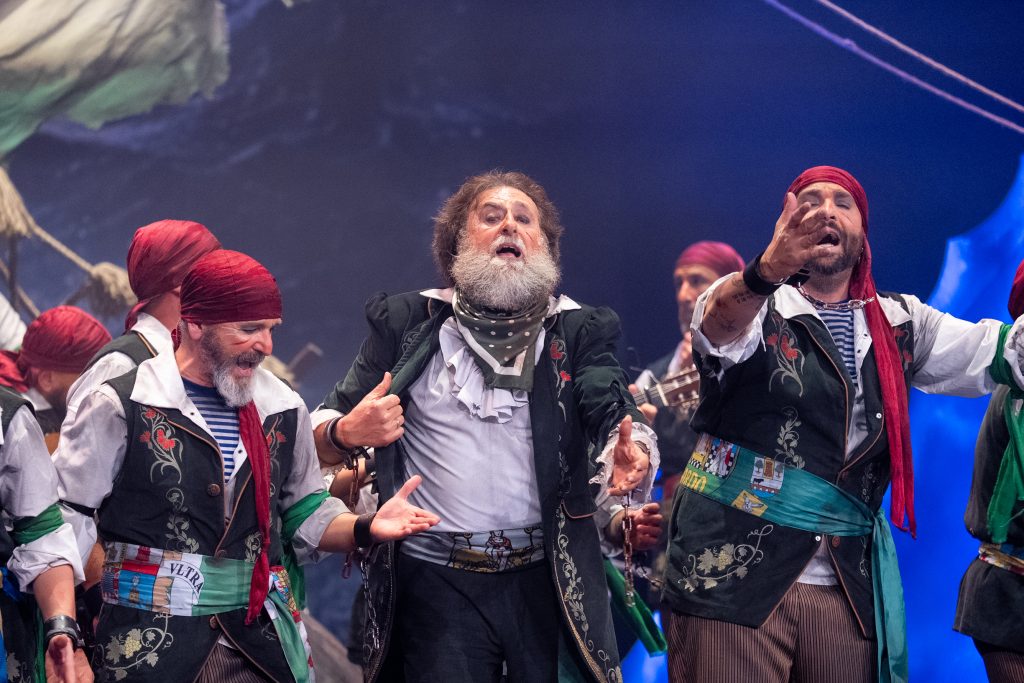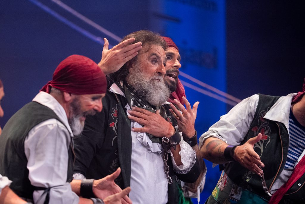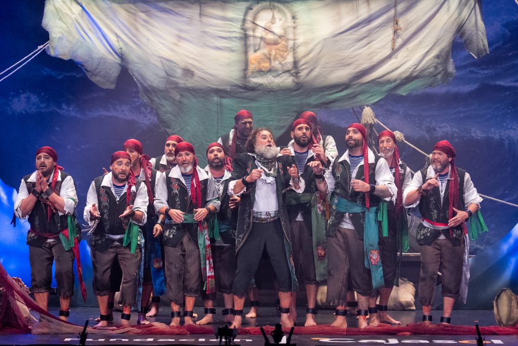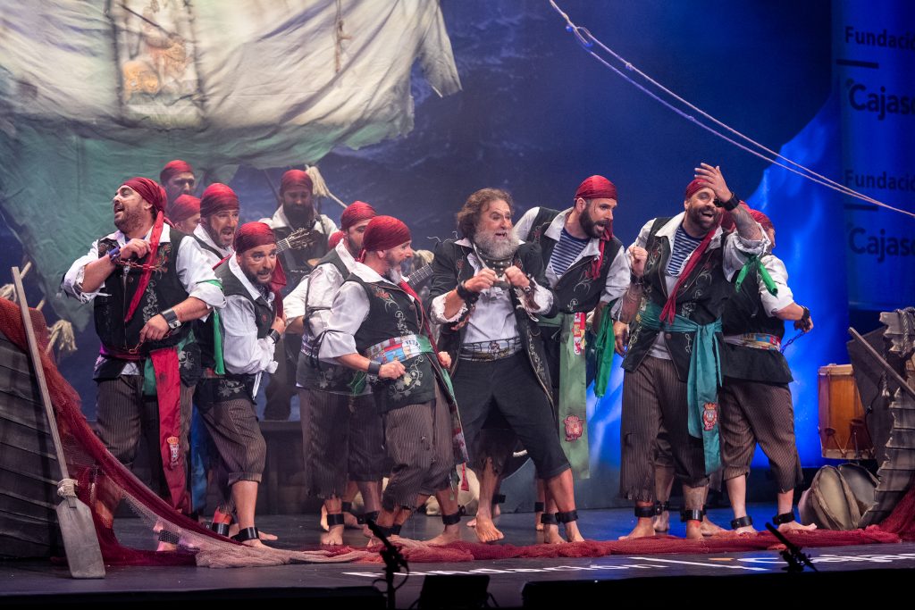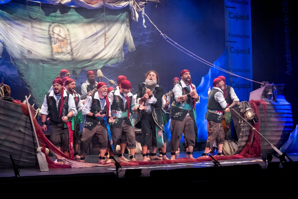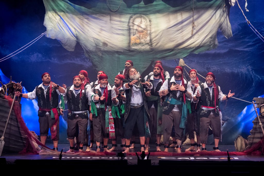 La comparsa de Chiclana estrenó ‘La condená’, una propuesta marina y simbólica con fuerte carga social y el regreso escénico de Antonio García ‘el Alemania’, asentada en una reivindicación andaluza y en críticas a la política y a la sanidad pública.