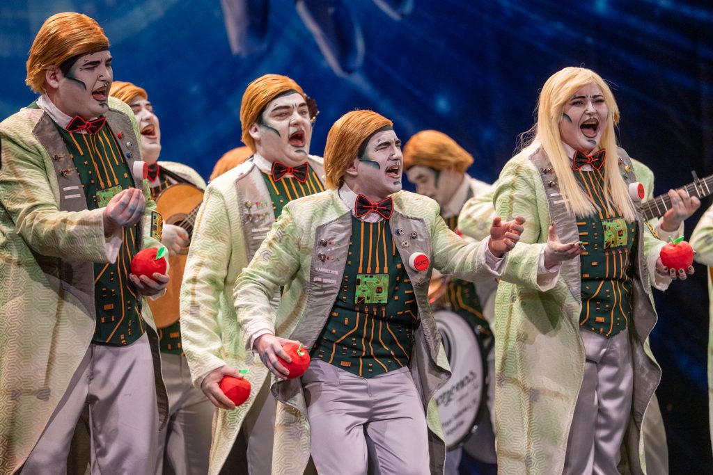 La crítica política llegó en el segundo pasodoble, centrado en la figura de Donald Trump y su papel en la geopolítica internacional, desde la guerra en Ucrania hasta los intereses energéticos. La letra buscó la lectura de doble rasero: la inteligencia artificial como progreso y la política internacional como retroceso o cinismo. El enfoque fue actual y ambicioso, aunque el trazo literario resultó más funcional que poético. La música acompañó con solvencia, pero el conjunto quedó en un terreno más discursivo que emocional.