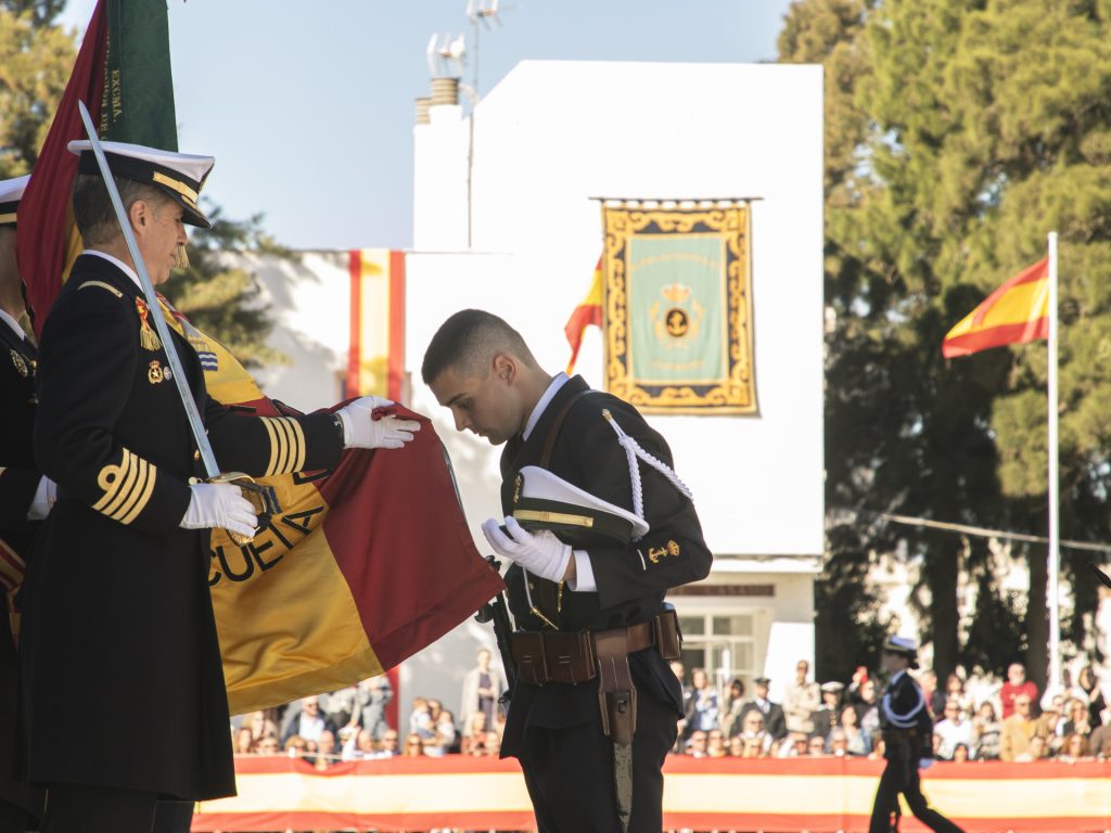 La Escuela de Suboficiales de la Armada, ubicada en San Fernando, ha celebrado este viernes la jura y renovación de juramento a la Bandera de la LXXXIX promoción del Curso de Acceso a las Escalas de Suboficiales. El acto estuvo presidido por el Almirante Jefe de Personal de la Armada, Alfonso Delgado Moreno, y reunió a autoridades civiles y militares, además de familiares del alumnado participante.