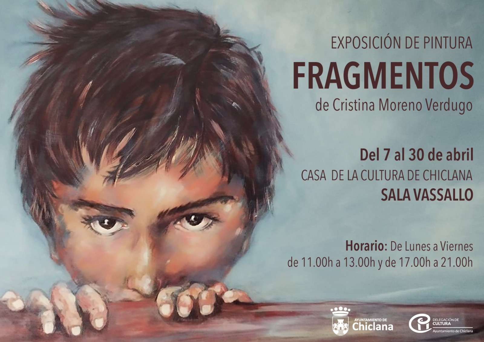 La Sala Vassallo de la Casa de la Cultura acoge desde este martes 7 de abril la exposición “Fragmentos”, una muestra de la pintora chiclanera Cristina Moreno Verdugo que reúne una selección de obras centradas en el paisaje y el retrato. La inauguración tendrá lugar a las 19.00 horas y la exposición permanecerá abierta al público hasta el 30 de abril.