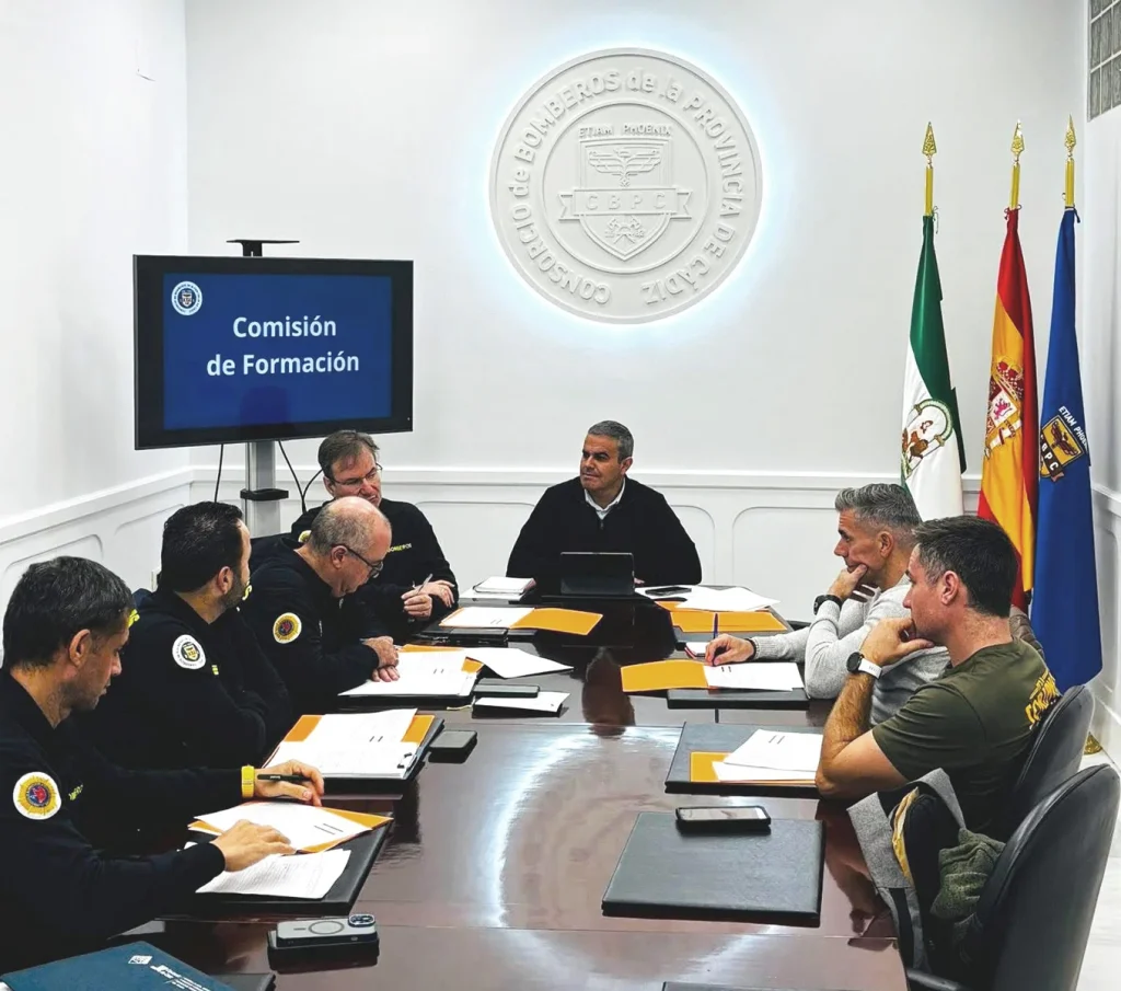 El Consorcio de Bomberos de la Provincia de Cádiz ha dado un nuevo impulso a la formación del Consorcio de Bomberos de Cádiz con la celebración este martes de la Comisión de Formación, convocada por su presidente, José Ortiz. El encuentro reunió a representantes sindicales junto al director técnico, José Luis Ferrer, y al responsable de Formación, José Enrique Vargas, con el objetivo de adaptar los procesos internos a las necesidades actuales del servicio, destinar más recursos y garantizar una mayor transparencia en todo el sistema formativo.
