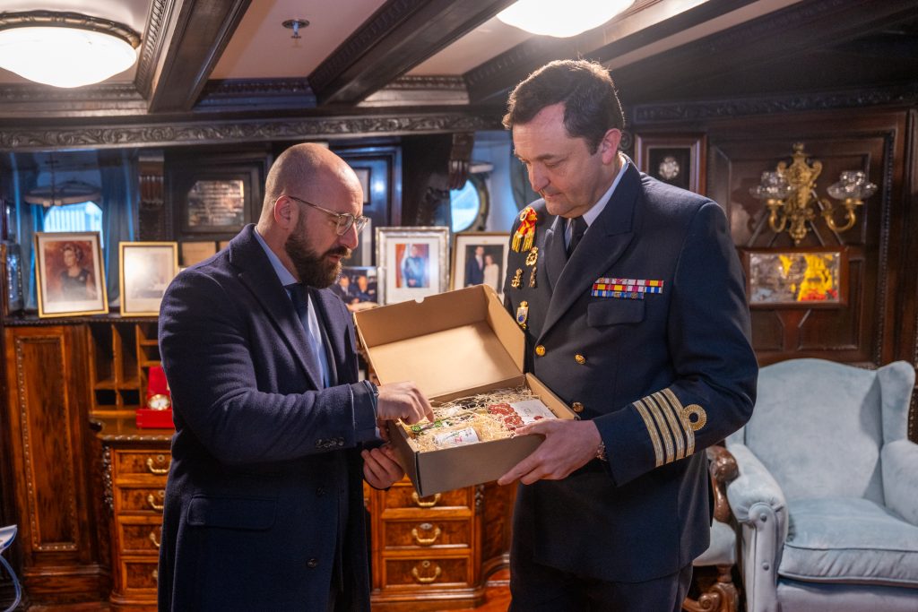 El acto de entrega se realizó con la presencia del vicepresidente de la Diputación y responsable del área de Turismo, Germán Beardo, quien trasladó al comandante del buque, José María de la Puente Mora-Figueroa, el material destinado al viaje. Esta acción refuerza la colaboración entre el Patronato Provincial de Turismo y el Buque Escuela, que mantiene históricamente una relación estrecha con la ciudad de Cádiz debido a su condición de puerto de salida y llegada de las campañas de instrucción.