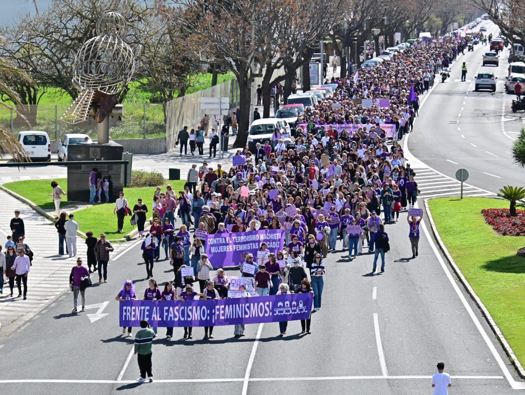 Bajo el lema “Frente al fascismo, ¡Feminismos!”, la movilización situó su mensaje en un contexto que las organizadoras calificaron como de “avance de discursos reaccionarios”. Durante el recorrido, las participantes corearon consignas feministas y portaron pancartas en defensa de la igualdad y contra las violencias machistas.