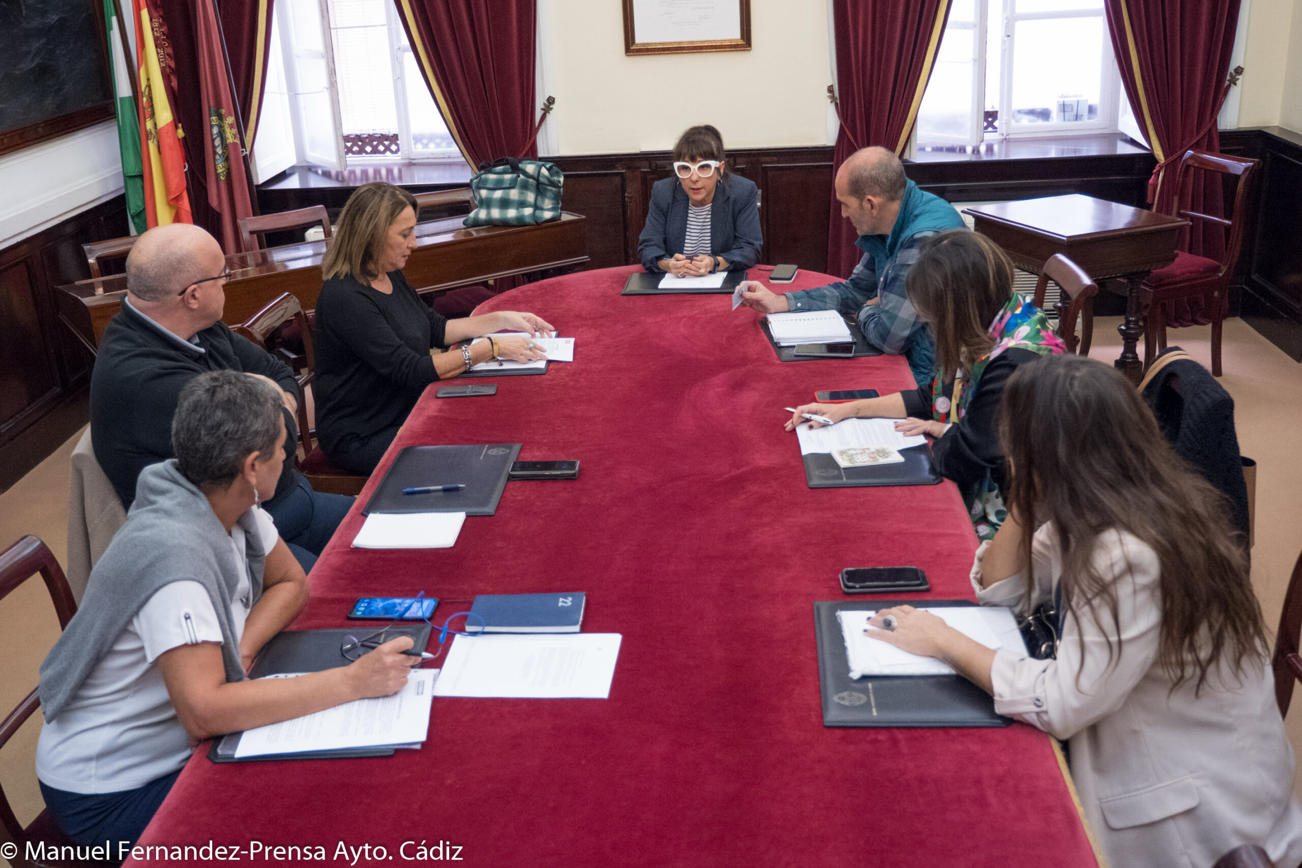 La ministra de Industria, Comercio y Turismo, Reyes Maroto, ha visitado esta mañana las instalaciones de la Zona Franca de Cádiz, en donde se ha reunido con el delegado del Estado, Fran González, que la ha recibido en su despacho de la Sede Social y le ha explicado la actividad de la Institución gaditana y sus proyectos más destacados. En el encuentro han estado presentes el delegado del Gobierno de España en Andalucía, Pedro Fernández; y el subdelegado del Gobierno en Cádiz, José Pacheco.