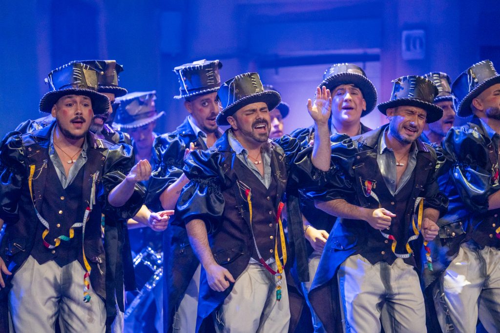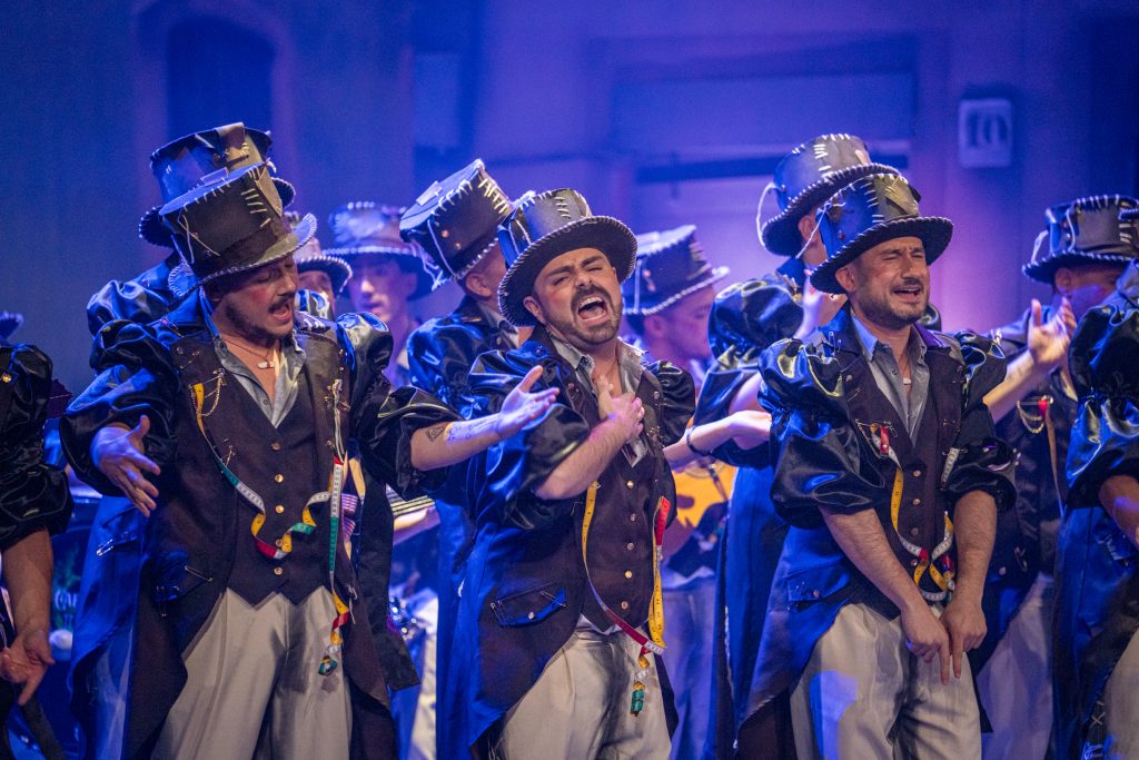 El primer pasodoble profundizó en la idea matriz: Cádiz critica a todo el mundo, pero exonera al amigo y al conocido; perdona al carnavalero “malo” por la etiqueta y normaliza comportamientos impropios porque “Cádiz perdona, pero solo si no viene”. La letra cargó contra farsantes, cobardes, abusos en la cantera y hipocresía de redes. La crítica fue frontal, casi amarga, sin metáfora ni cuidado literario para suavizar el golpe. El remate —“¿qué denuncia hay en el carnaval?”— volvió la mirada hacia adentro: la fiesta como producto estético que evita enfrentarse a sí misma.
