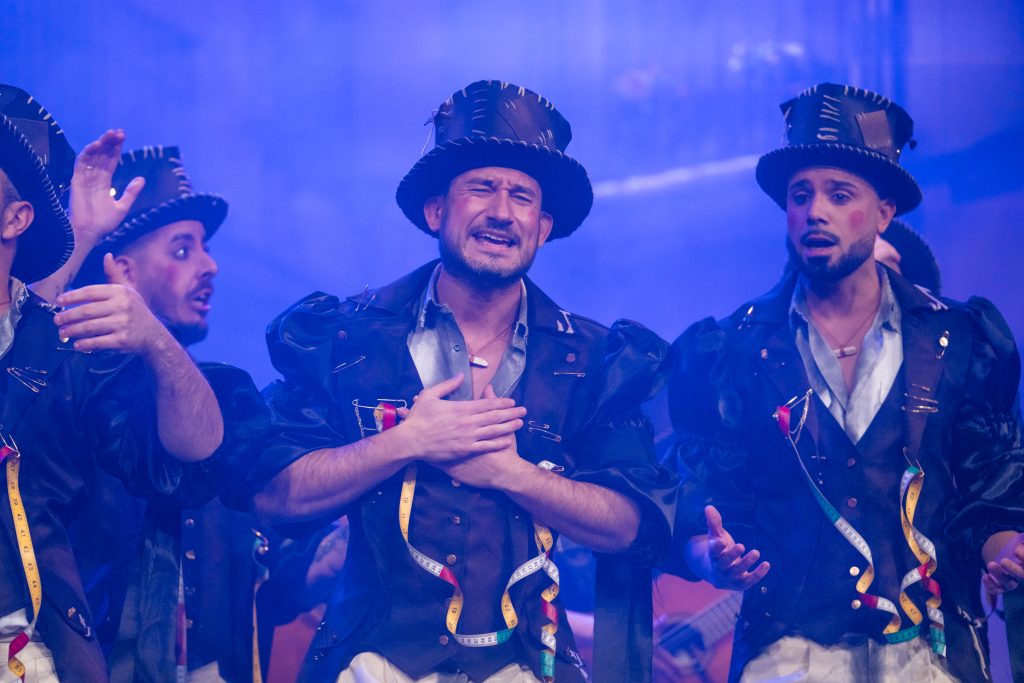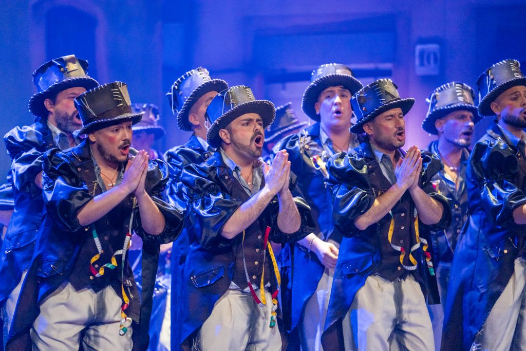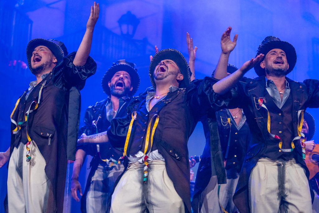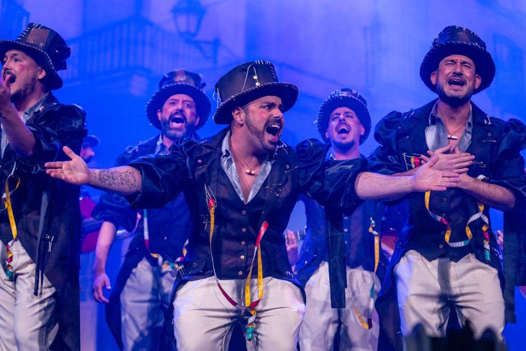 La comparsa gaditana ‘La moda de Cádiz’, con letra, música y dirección de José Antonio Barrios, cerró la noche de preliminares con un regreso inesperado tras su última aparición en 2018 con ‘Vientos’. Lo hizo con un tipo de costureros que “visten” la ciudad y sostienen una tesis central tan atractiva como pesimista: Cádiz está de moda, pero las modas son pasajeras y acaban dañando a la ciudad que explotan.