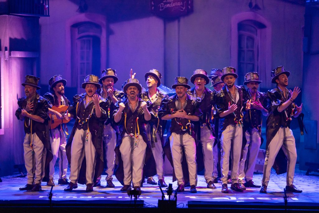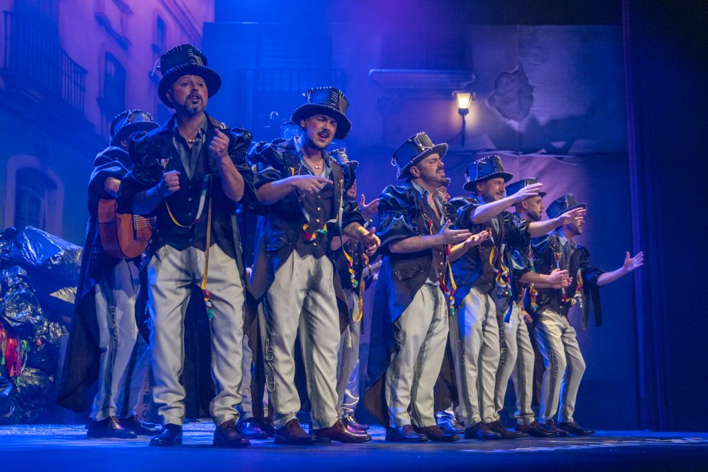 La tanda de cuplés no acompañó. El primero, sobre indigencia y picaresca, se quedó en chiste antiguo y mal resuelto. El segundo, sobre hamburguesas y Paco Pellejo en la ‘Champions Burger’, buscó guiño localista con redes pero no funcionó en remate. Ambos quedaron cortos, fuera de tono y sin risa. El estribillo, con la alfombra roja para el turista y la salida del gaditano, estuvo mejor escrito que cantado, pero terminó siendo repetido sin aportación.
