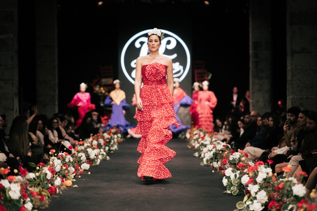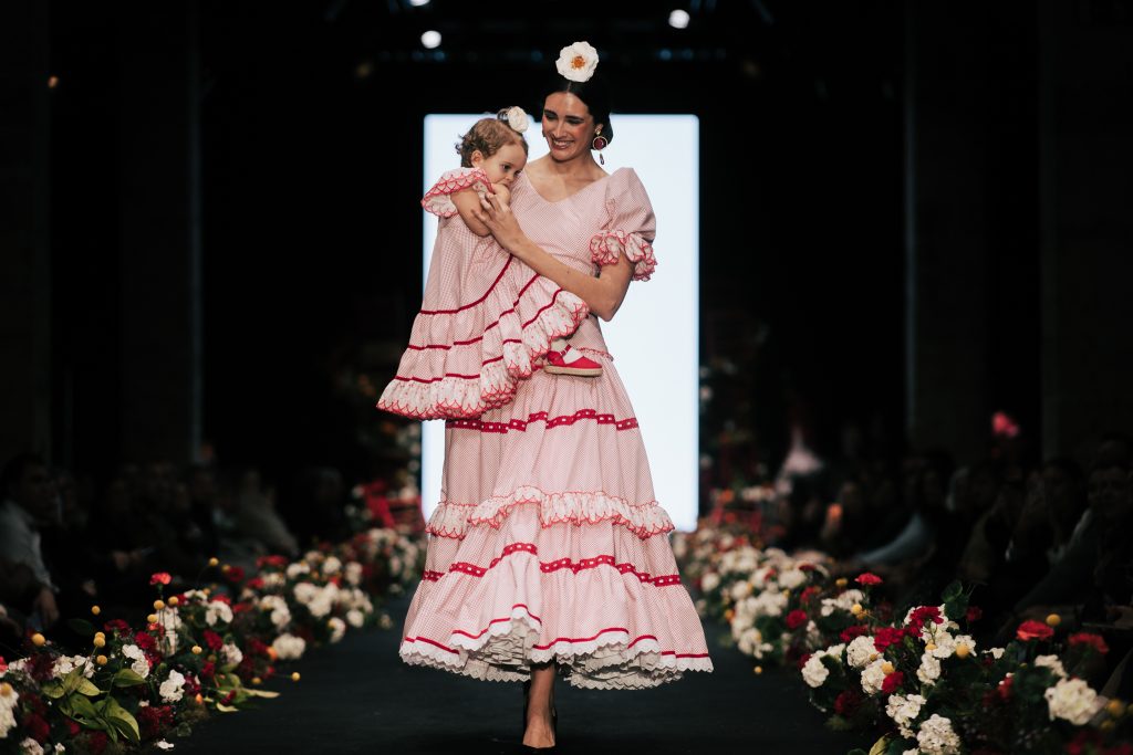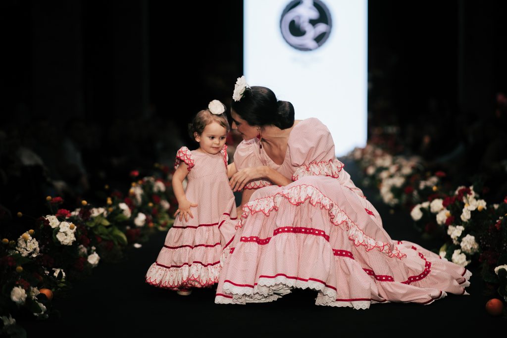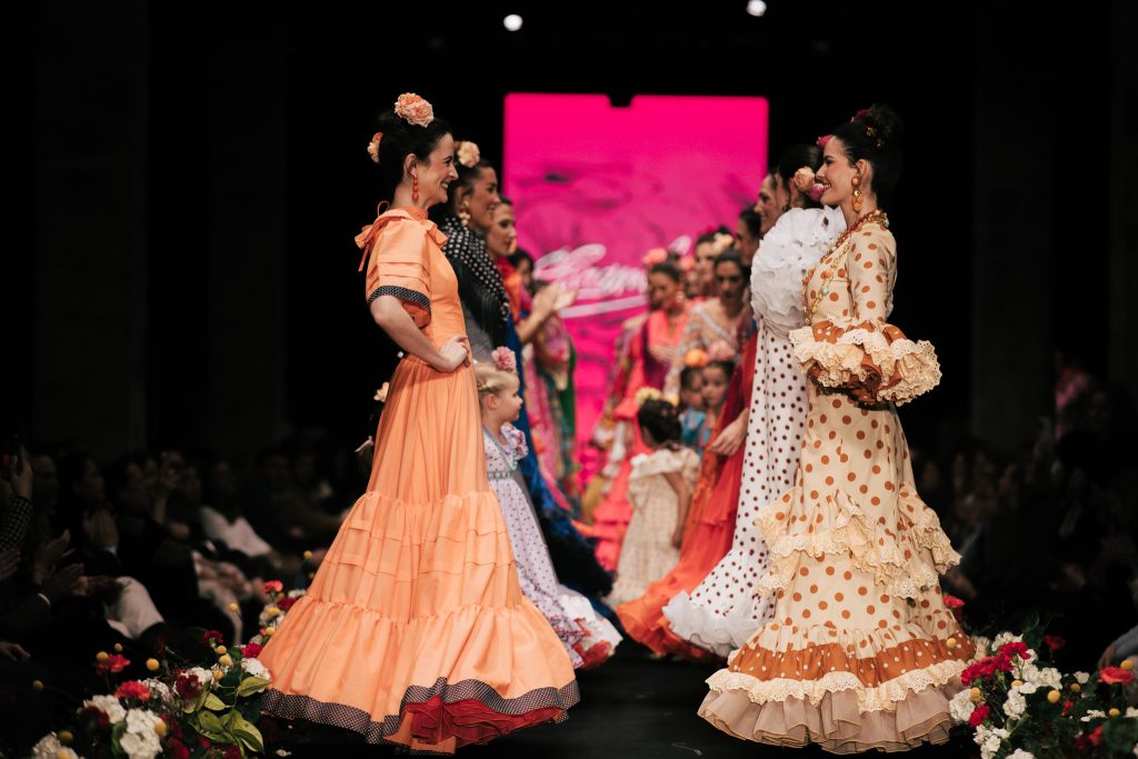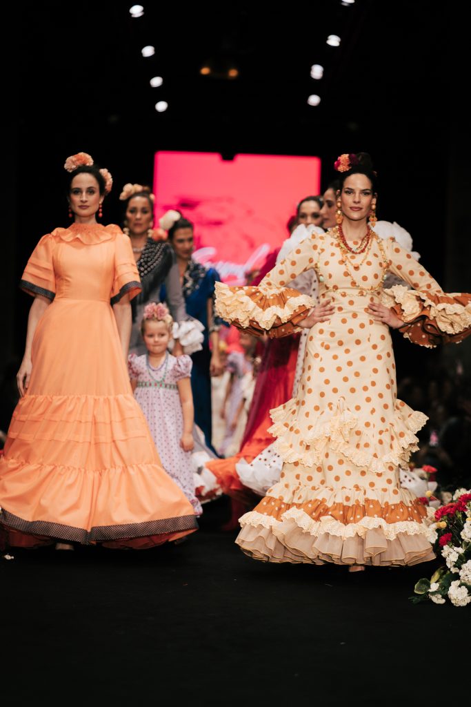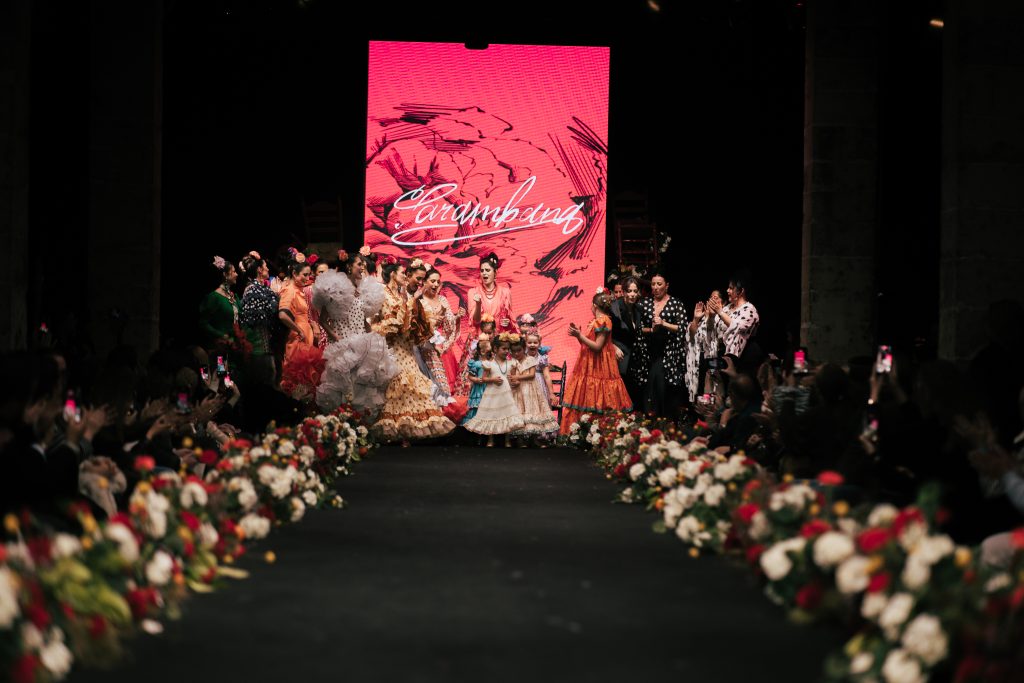 A las 12:30 horas tomó el relevo la firma Ele.O con su colección “Pasarela con Duende”, presentada como una pasarela multigeneracional donde convivieron estilos y edades. La propuesta unificó trajes para niñas, adolescentes y mujeres, conectados por volantes amplios y una paleta cromática decidida que buscó el impacto visual sin perder vínculo con la tradición flamenca.