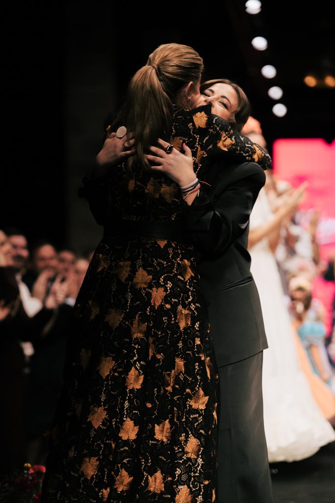 La tarde estuvo marcada por ocho desfiles que articularon la dialéctica entre el patronaje clásico y las lecturas más contemporáneas. Ángeles Fernández presentó “Ataraxia”, una colección basada en la serenidad y las líneas depuradas, con tonos empolvados, tierras y blancos, cadenas como recurso estético y tejidos como popelines, perforados, creps y satén.