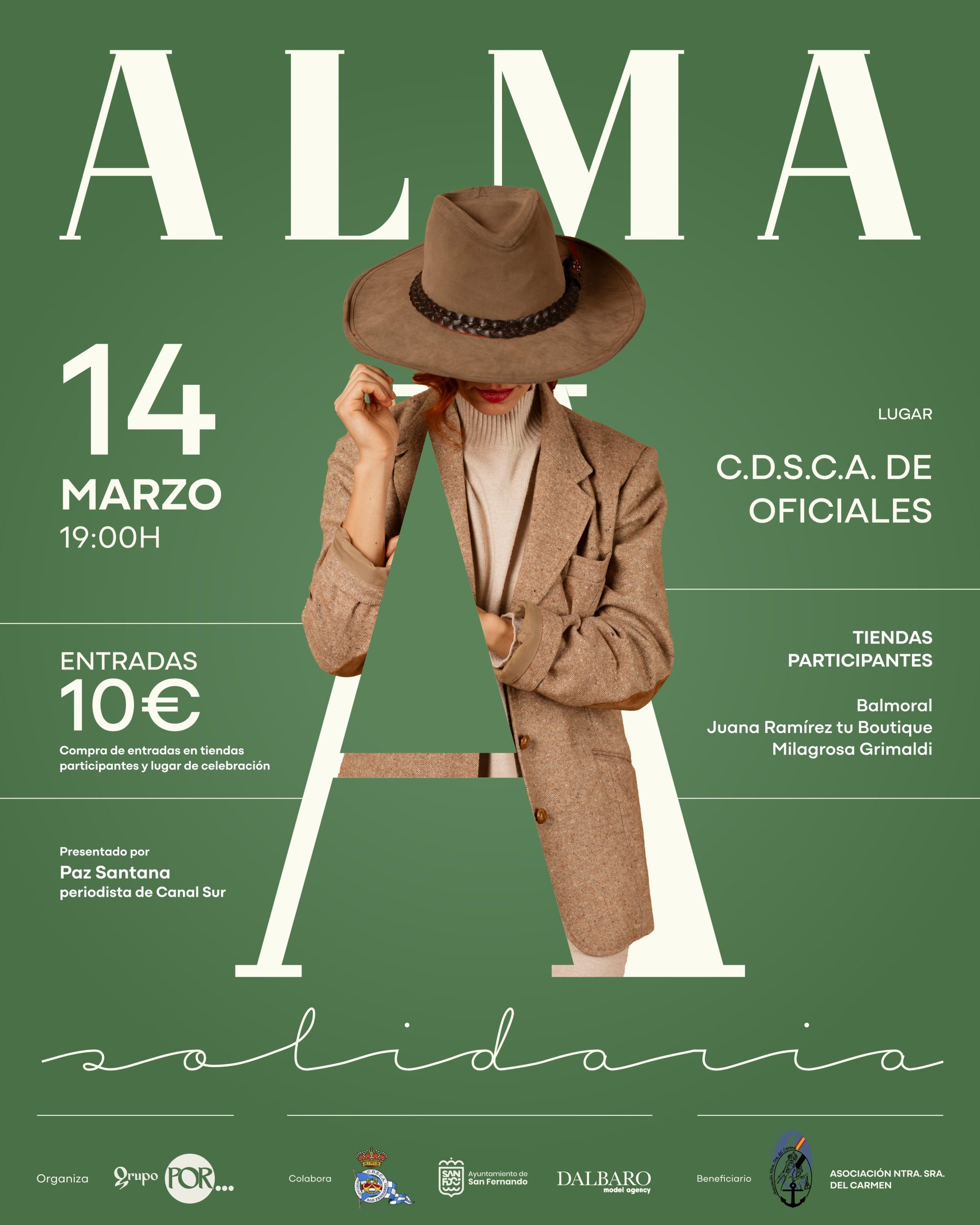 La Pasarela Solidaria ALMA en San Fernando volverá a celebrarse el próximo 14 de marzo en el Centro Deportivo y Sociocultural de la Armada (CDSCA) de Oficiales, tras un periodo de pausa, con el objetivo de recaudar fondos para la Asociación Nuestra Señora del Carmen y otras causas sociales del municipio.