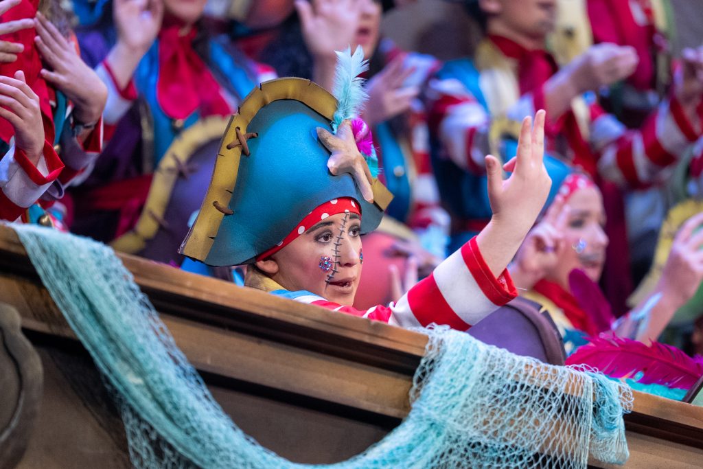 Desde el punto de vista formal, el coro mostró limpieza de voces, separación clara por cuerdas, coordinación escénica y una dirección sólida por parte de Jorge Gutiérrez Orihuela, sin aceleraciones impropias. El uso del espacio estuvo resuelto de manera eficaz pese a la densidad de componentes en escena y el buque decorativo no obstaculizó las líneas de desplazamiento.