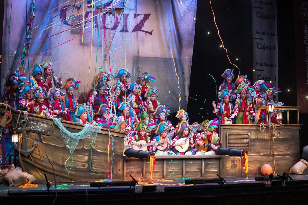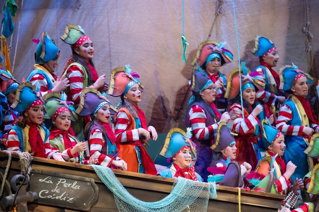 ‘La perla de Cádiz’ compuso una actuación de gran escala visual y coral, con equilibrio entre estética, emoción y oficio, defendiendo el tango como elemento identitario del carnaval y consolidando la presencia del coro en una cantera donde la modalidad suele contar con menor densidad que en adultos, pero no menor ambición.