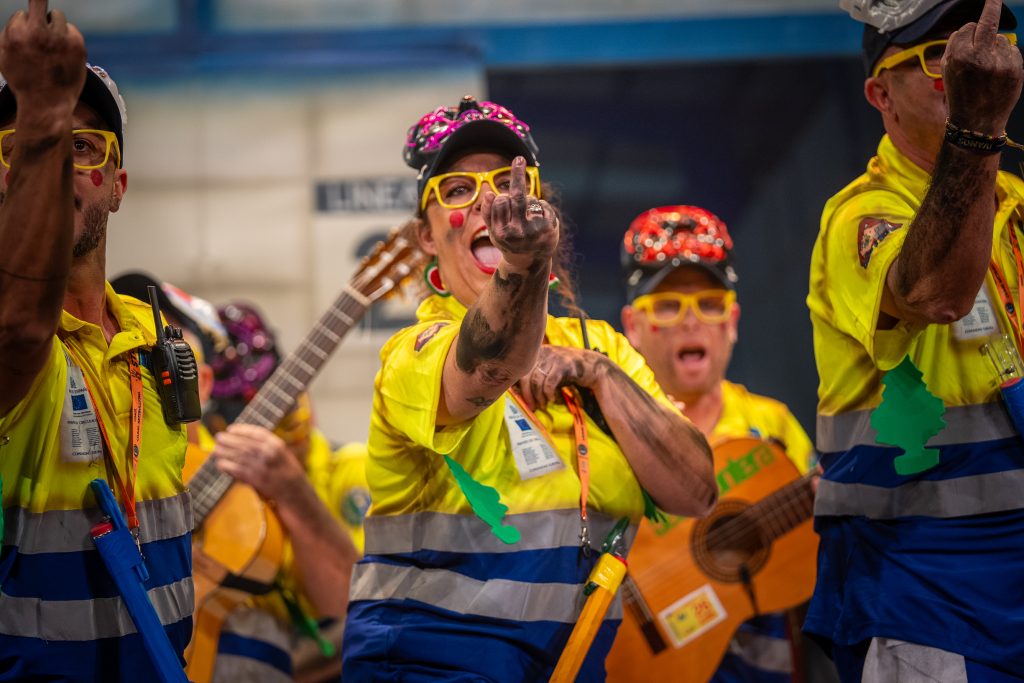 El segundo pasodoble se movió al terreno político con claridad y contundencia. La letra arremetió contra el “andalucismo oportunista”, acusándolo de articularse como estrategia electoral y de repartirse alcaldías mediante pactos contra natura. La comparación con herederos de Pacheco y el remate sobre traiciones ideológicas conectaron con la tradición crítica del carnaval político. El mensaje fue directo, sin eufemismo y sin buscar medias tintas, dentro de un año en el que la política está presente pero no siempre desde este ángulo.