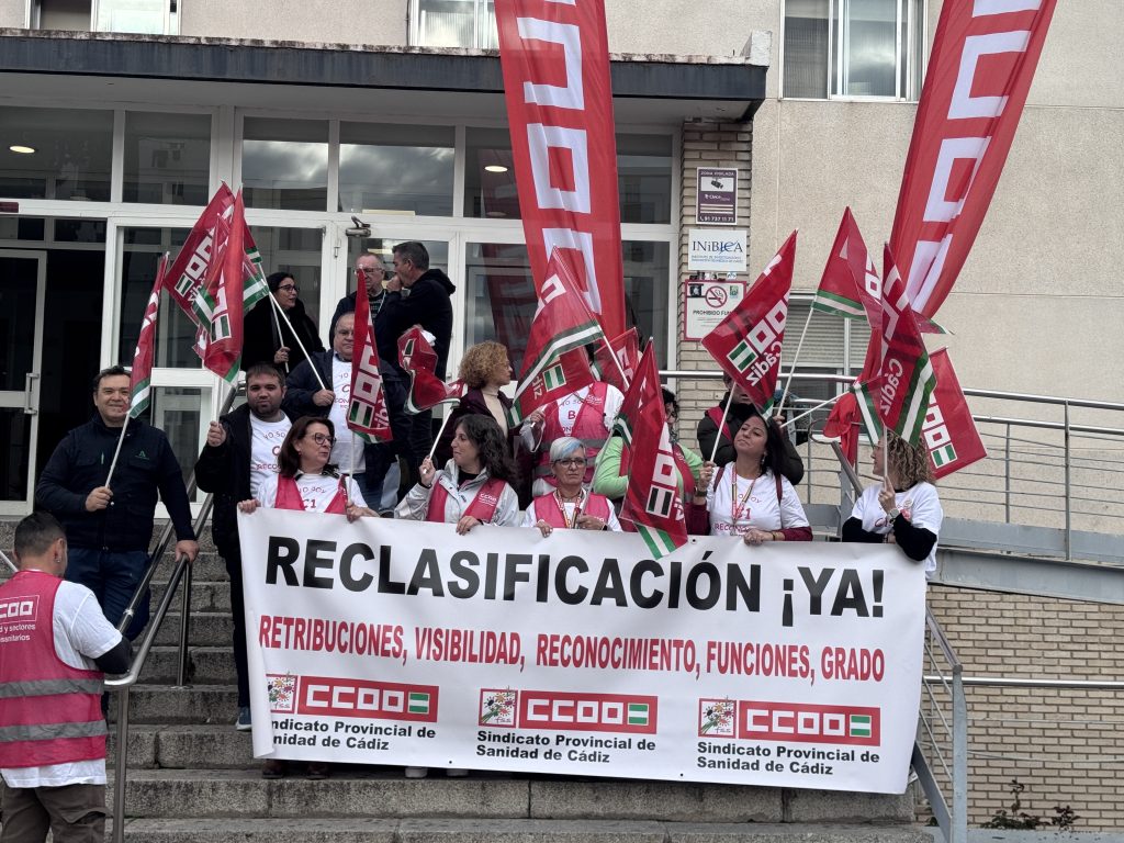 La reclasificación profesional de los Técnicos Medios y Superiores en el Hospital de Jerez centra la concentración convocada por CCOO
